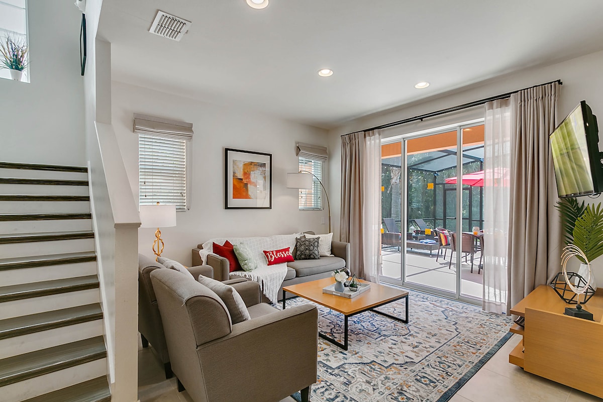 Αυτό το ευρύχωρο και πρόσφατα ανακαινισμένο αρχοντικό βρίσκεται σε ένα όμορφο ιδιωτικό και περιφραγμένο θέρετρο, το οποίο προσφέρει στους επισκέπτες το δικό τους ιδιωτικό τζακούζι, κοινόχρηστη πισίνα με μπαρ στην πισίνα, γυμναστήριο και παντοπωλείο. Χωρίς χρέωση θερέτρου ή στάθμευσης! Οι επισκέπτες έχουν ιδιωτικό τζακούζι και απολαμβάνουν ουδέτερα χρώματα στη διακόσμηση των εσωτερικών χώρων που δίνουν απαλή αισθητική, ενώ οι μοντέρνες βιομηχανικές αποχρώσεις προσθέτουν γοητεία και χαρακτήρα. Βρίσκεται μόλις 3 μίλια από τη Disney και 11 μίλια από τα Universal Studios!