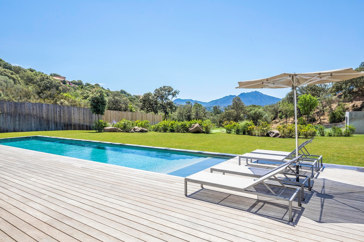 Ruhige Lage in einem großen, angelegten Garten umringt von Olivenbäumen und Steineichen mit herrlichem Meerblick bis nach Campomoro, wo der größte der Genueser Türme steht, der auf lohnenswerter Wanderung mit Badegelegenheit auch bestiegen werden kann) . Im Garten gedeihen Pflanzen mit Verletzungspotential (Agaven, Kakteen, Bougainvillen). Die Wege sind teilweise nicht befestigt. Eltern haften für ihre Kinder! Nach Mitteilung der ungefähren Ankunftszeit übergibt Ana im Haus die Schlüssel