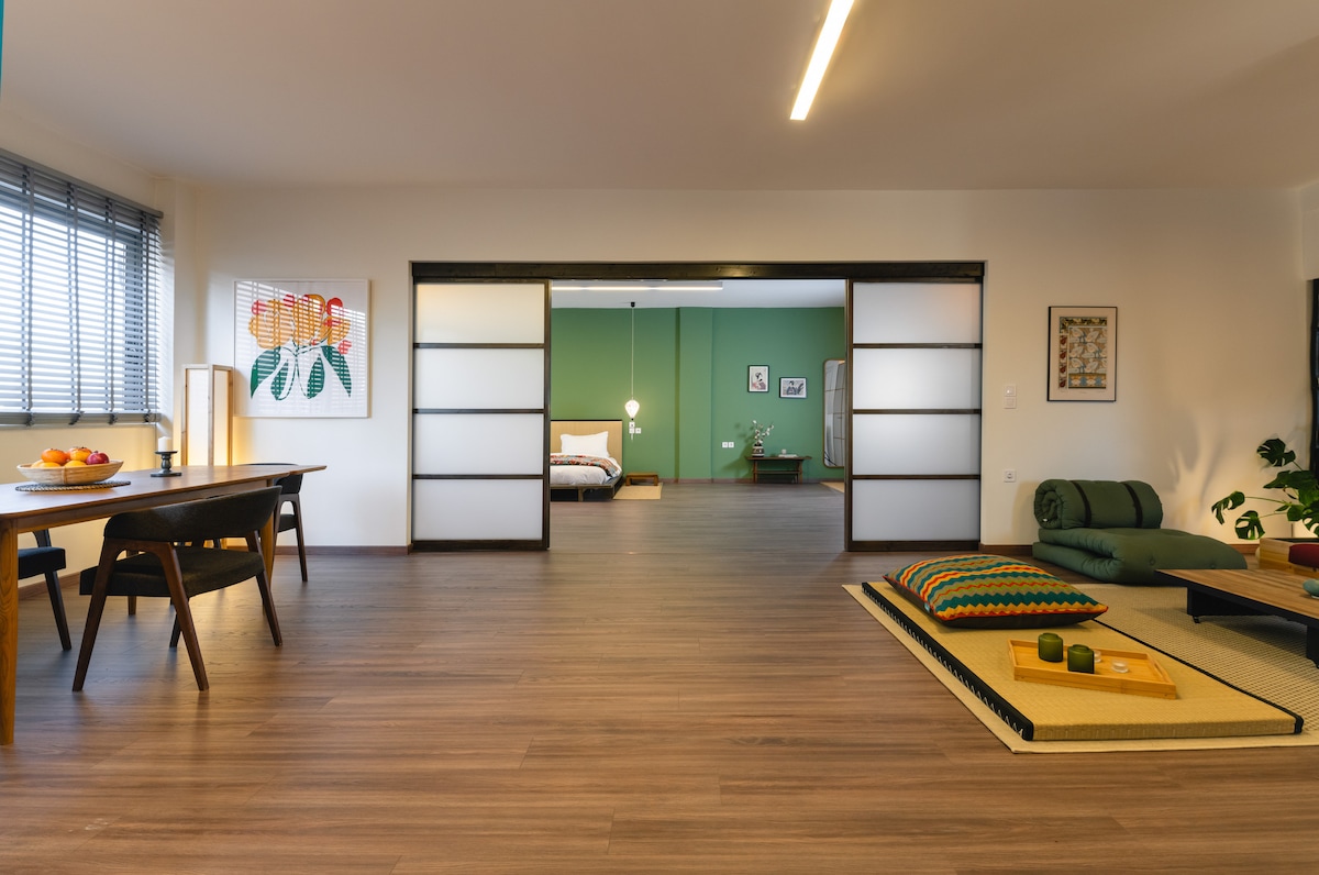 Το διαμέρισμα των επισκεπτών μας είναι ολοκαίνουργιο, μεταμορφωμένο από ένα παλιό εργαστήριο τυπογραφίας σε έναν εκλεπτυσμένο χώρο με design. Τα έπιπλα δημιουργήθηκαν με το χέρι χρησιμοποιώντας τοπικά και φιλικά προς το περιβάλλον υλικά ή ανακαινισμένα παλιά κομμάτια. Υπάρχει ένα υπέρδιπλο κρεβάτι με εξαιρετικά άνετο στρώμα και μαξιλάρια εξαιρετικής ποιότητας, ένα γραφείο εργασίας με βιβλιοθήκη, ένας καναπές που μετατρέπεται σε διπλό κρεβάτι και μια πλήρως εξοπλισμένη κουζίνα με τραπεζαρία. Τα μεγάλα παράθυρα βιομηχανικού στιλ ανοίγουν απευθείας στη βεράντα όπου ο επισκέπτης μας μπορεί να απολαύσει το μεσημεριανό του ή να χαλαρώσει στις ξαπλώστρες με απεριόριστη θέα σε μια κεντρική χαλαρωτική πλατεία. Στο ευρύχωρο μπάνιο, θα βρείτε ένα μεγάλο ντους και έναν αποθηκευτικό χώρο με πολλές επιπλέον ανέσεις και ανέσεις, όπως πλυντήριο ρούχων, πιστολάκι μαλλιών, κουτί πρώτων βοηθειών και πετσέτα. Ο χώρος διαθέτει ίντερνετ υψηλής ταχύτητας και έχει σχεδιαστεί για να είναι προσβάσιμος σε άτομα με ειδικές ανάγκες. Κάθε χώρος ή προμήθεια στην ιδιοκτησία μου είναι διαθέσιμος για χρήση. Επιτρέπω ευέλικτη ώρα άφιξης για τους επισκέπτες μου και επίσης είμαι συχνά διαθέσιμος επειδή ζω και εργάζομαι στη γειτονιά. Αλλά προτιμώ να σεβαστώ την ιδιωτικότητά σας, οπότε σας ενημερώνω να επικοινωνήσετε μαζί μου (sms, ταχυδρομείο, τηλέφωνο) αν έχετε οποιοδήποτε αίτημα ή θέματα που σας απασχολούν. Επίσης, υπάρχει διαθέσιμος ένας μοναδικός οδηγός με διάφορες πληροφορίες και πολλές συμβουλές για την πόλη, προκειμένου να σας διευκολύνει να διαχειριστείτε τις ανάγκες σας και να ανακαλύψετε το "πνεύμα του τόπου". Το διαμέρισμα βρίσκεται στη γειτονιά του Ψυρρή, μιας από τις παλαιότερες συνοικίες της Αθήνας γύρω από τον βράχο της Ακρόπολης. Βρίσκεται σε έναν ήσυχο δρόμο δίπλα σε μια πεζόδρομο, με μικρές πλατείες όπου οι άνθρωποι συγκεντρώνονται για να φάνε ή να ψωνίσουν από τεχνίτες ή συλλέκτες. Σε απόσταση περπατήματος (3-4 λεπτά) από τους σταθμούς του μετρό Μοναστηράκι (γραμμή 1 & 3) και Θησείο (γραμμή 1). Ο σταθμός Μοναστηράκι έχει άμεση σύνδεση με το αεροδρόμιο και το λιμάνι του Πειραιά. Χρησιμοποιώντας το μετρό ή με αυτοκίνητο/ταξί φτάνετε στον σιδηροδρομικό σταθμό Λάρισης προς την κεντρική και βόρεια Ελλάδα. Στάθμευση με κάρτα χαμηλού κόστους ή σε ιδιωτικό χώρο στάθμευσης στο επόμενο τετράγωνο με ημερήσια χρέωση (από 5 €). Μη διστάσετε να ζητήσετε πληροφορίες σχετικά με τις τρέχουσες πολιτιστικές και κοινωνικές εκδηλώσεις στην πόλη κατά τη διάρκεια της διαμονής σας. Επίσης, είμαι μια νεαρή μητέρα και μπορώ να μοιραστώ με άλλες μητέρες πολλές παροχές για σίτιση, ύπνο ή δημιουργικό παιχνίδι για νεογέννητα και παιδιά.