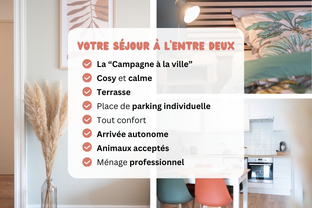 Απολαύστε ένα νέο, κομψό και ιδανικά τοποθετημένο κατάλυμα. Αυτό το ανακαινισμένο T2 αποτελείται από ένα υπνοδωμάτιο, ένα σαλόνι / τραπεζαρία, κουζίνα και μπάνιο με τουαλέτα. Βρίσκεται 15 λεπτά με τα πόδια από τον καθεδρικό ναό, 5 λεπτά από το στάδιο, μπορείτε να απολαύσετε όλες τις ανέσεις. Εργαζόμενος ή παραθεριστής, έχετε μια ιδιωτική είσοδο και δωρεάν πάρκινγκ. Κατόπιν αιτήματος: - Δυνατότητα φύλαξης των 2 τροχών σας σε κλειστό γκαράζ. - Τοποθέτηση και προετοιμασία ενός δεύτερου κρεβατιου (εάν υπάρχουν 2 ξεχωριστά κρεβάτια).