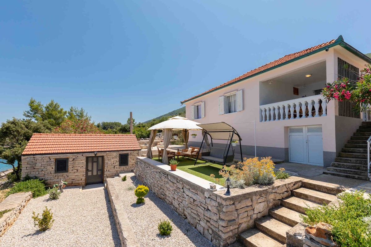 Καλώς ήρθατε στο τέλειο καταφύγιο για χαλαρωτικές και γαλήνιες διακοπές! Φωλιασμένο στη γαλήνια νότια ακτή του Korcula, ένα από τα μαγευτικά νησιά κατά μήκος της ακτής της Δαλματίας μεταξύ Ντουμπρόβνικ και Σπλιτ Κάθε δωμάτιο είναι εξοπλισμένο με έναν έξυπνο ανεμιστήρα οροφής για να εξασφαλίζει την άνεσή σας καθ 'όλη τη διάρκεια της νύχτας. - Ειδικό δωμάτιο γραφείου με εκπληκτική θέα, παρέχοντας έναν ιδανικό χώρο για δουλειά ή στιγμές έμπνευσης. ΔΙΑΘΕΣΙΜΗ ΔΩΡΕΑΝ ΓΙΑ ΝΑ ΕΞΕΡΕΥ ★ STAND UP PADDLE BOARDS X3 ★ ΠΟΔΗΛΑΤΑ X2 ★ ΚΑΓΙΑΚ