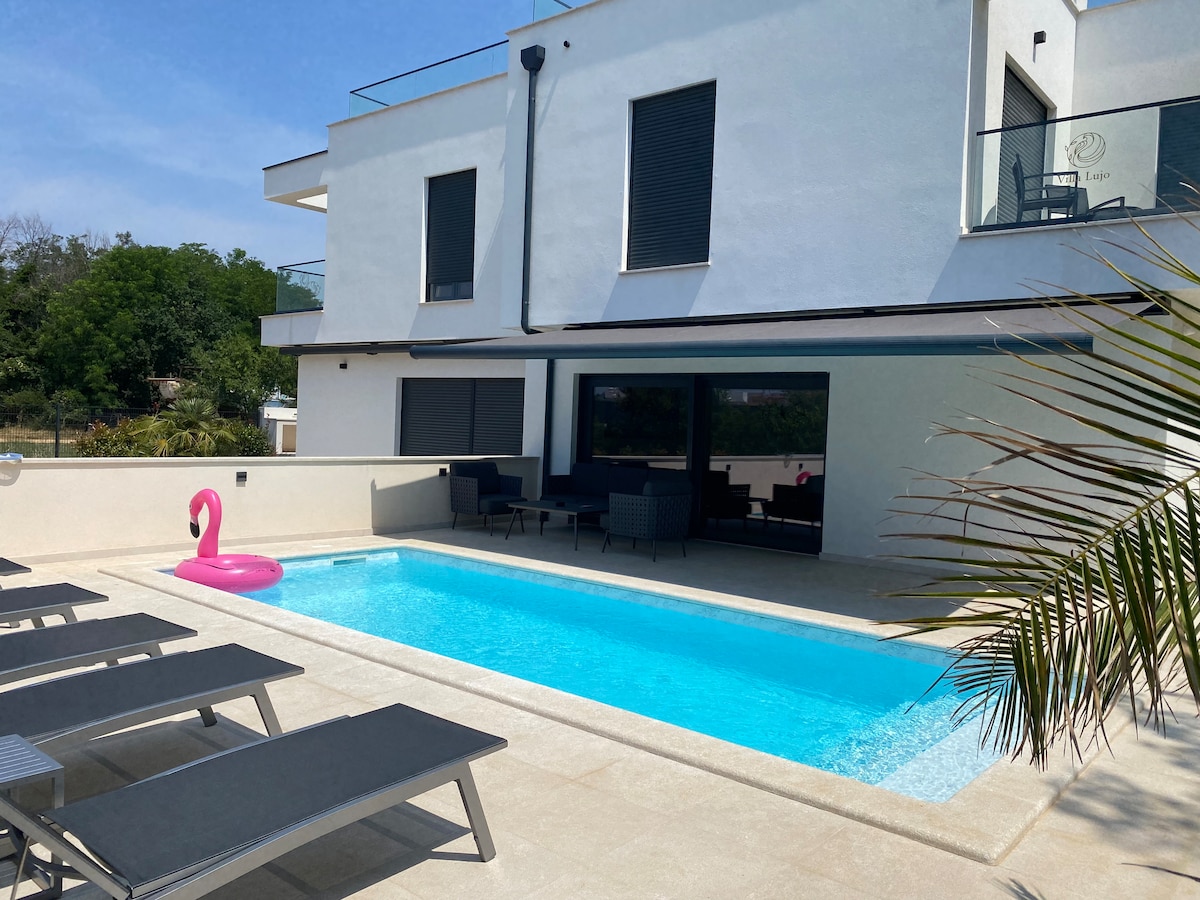 Η βίλα απέχει μόλις 700 μέτρα από την κοντινότερη παραλία. Είναι σε κοντινή απόσταση με τα πόδια από εστιατόρια, σούπερ μάρκετ, πάρκα και αθλητικές δραστηριότητες. Με θερμαινόμενη ιδιωτική πισίνα, υπαίθριο σαλόνι, τραπεζαρία και εγκαταστάσεις μπάρμπεκιου. Άφθονος δωρεάν ιδιωτικός χώρος στάθμευσης. Ευρύχωρο εσωτερικό σαλόνι και τραπεζαρία, με πλήρως εξοπλισμένη κουζίνα. Ολόκληρη η ιδιοκτησία είναι περιφραγμένη και κλειστή, οπότε είναι επίσης ιδανική για τα κατοικίδιά σας. Για τα παιδιά έχετε πολλές δραστηριότητες, συμπεριλαμβανομένου ενός από τα μεγαλύτερα υδάτινα πάρκα της Κροατίας σε μικρή απόσταση.