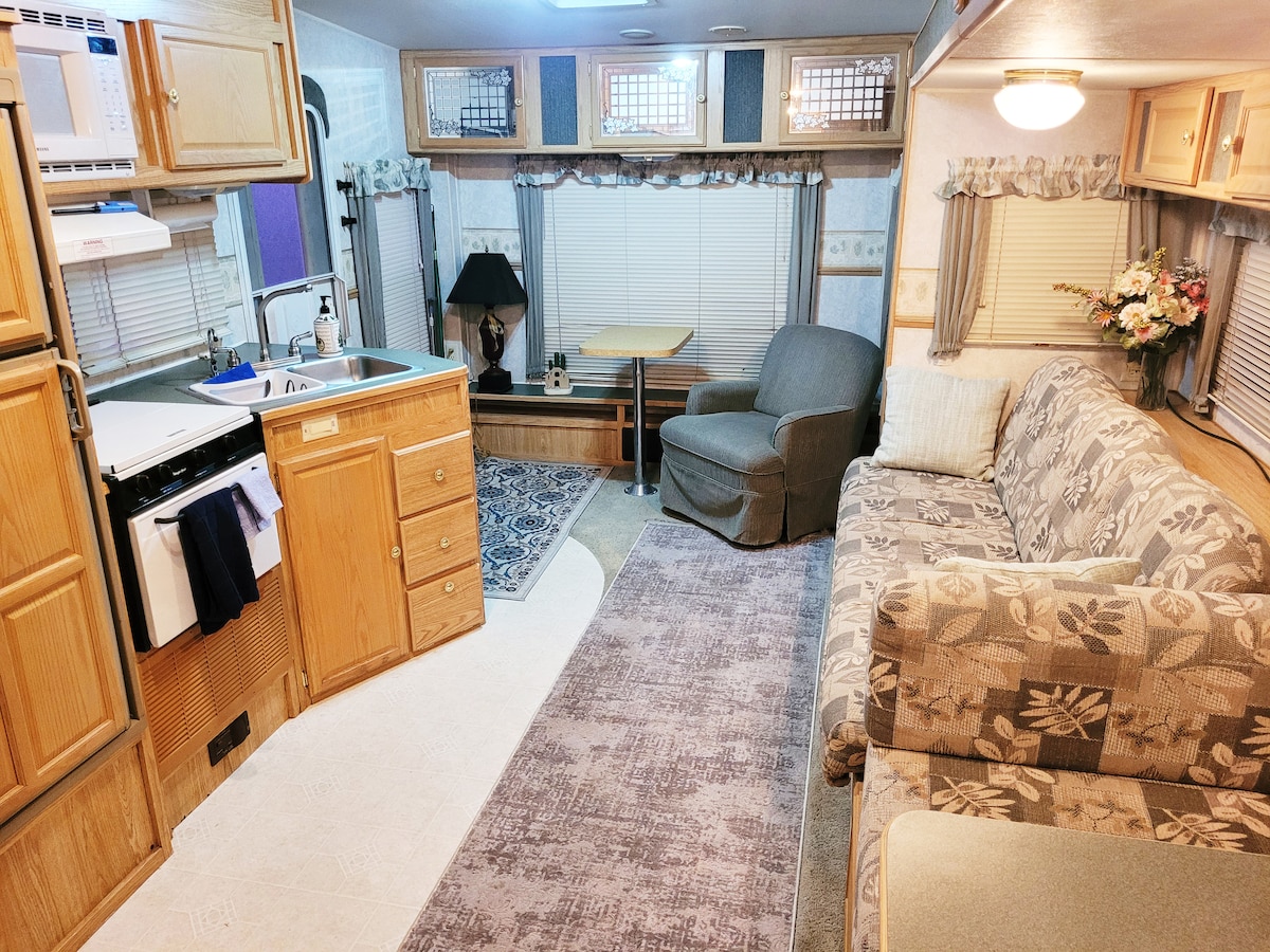 Το κατάλυμά μας προσφέρει άνεση, χαλάρωση και ευκολία σε ένα φιλόξενα διακοσμημένο περιβάλλον. Τρία δωμάτια προσφέρουν διάφορες ρυθμίσεις ύπνου για να καλύψουν όλες τις ανάγκες σας. Επιλέξτε ανάμεσα σε υπέρδιπλο, διπλό ή δύο μονά κρεβάτια. Πλήρως εξοπλισμένη και προσεγμένη κουζίνα που καλύπτύει όλες τις ανάγκες σας για φαγητό. Πολυτελής πίσω αυλή με καρέκλες Adirondack, τζάκι υγραερίου, κουνιστές πολυθρόνες βεράντας και σετ τραπεζαρίας εξωτερικού χώρου που επιτρέπουν τη χαλάρωση και την κοινωνικοποίηση. Διατίθεται πλυντήριο και στεγνωτήριο ρούχων, απορρυπαντικό και μαλακτικό ρούχων.