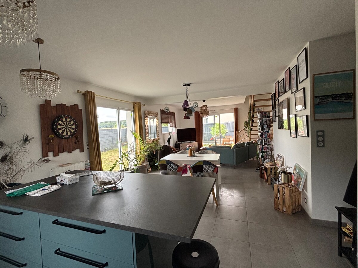 Το σπίτι που αγοράσαμε πρόσφατα, σε ένα οικιστικό συγκρότημα, είναι η κύρια κατοικία μας, στην οποία μένουμε κάθε δεύτερη εβδομάδα. Διαθέτει 4 υπνοδωμάτια, βεράντα και ηλιόλουστο κλειστό κήπο με θέα στην γύρω ύπαιθρο, ιδανικό για φαγητό έξω. Ήσυχο περιβάλλον. Λεωφορείο για Ρεν, 10 λεπτά με το αυτοκίνητο από το Métro Fréville, 20 λεπτά από τον σιδηροδρομικό σταθμό και το αεροδρόμιο. Ιδανικό για να επισκεφθείτε το Σαιν-Μαλό και το Μον-Σαν-Μισέλ (1 ώρα), το δάσος Brocéliande (40 λεπτά), το Βαν και τις παραλίες του Μορμπιχάν (1 ώρα και 20 λεπτά). Παρέχετε σεντόνια και πετσέτες.