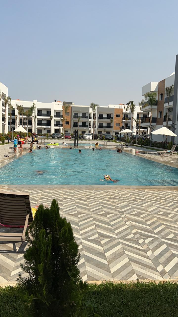 Super appartement climatisé en Résidence privée avec piscine, securité et parking gratuit.l appartement dispose de deux façade , est lumineux etspacieux orienté vers la Mer est composé de deux chambres, 2Salons,2SDB 2balcons et situé au 1er et etage,. Le grand balcon équipé en table et chaise,ayant vue dégagé sur Jardin et avec vue moyennement sur la piscine et doté d un balcon avec table vu jardin.L appartement e situé aux alentours de Marjane Market et Golf, aqua park et à 2min des plage