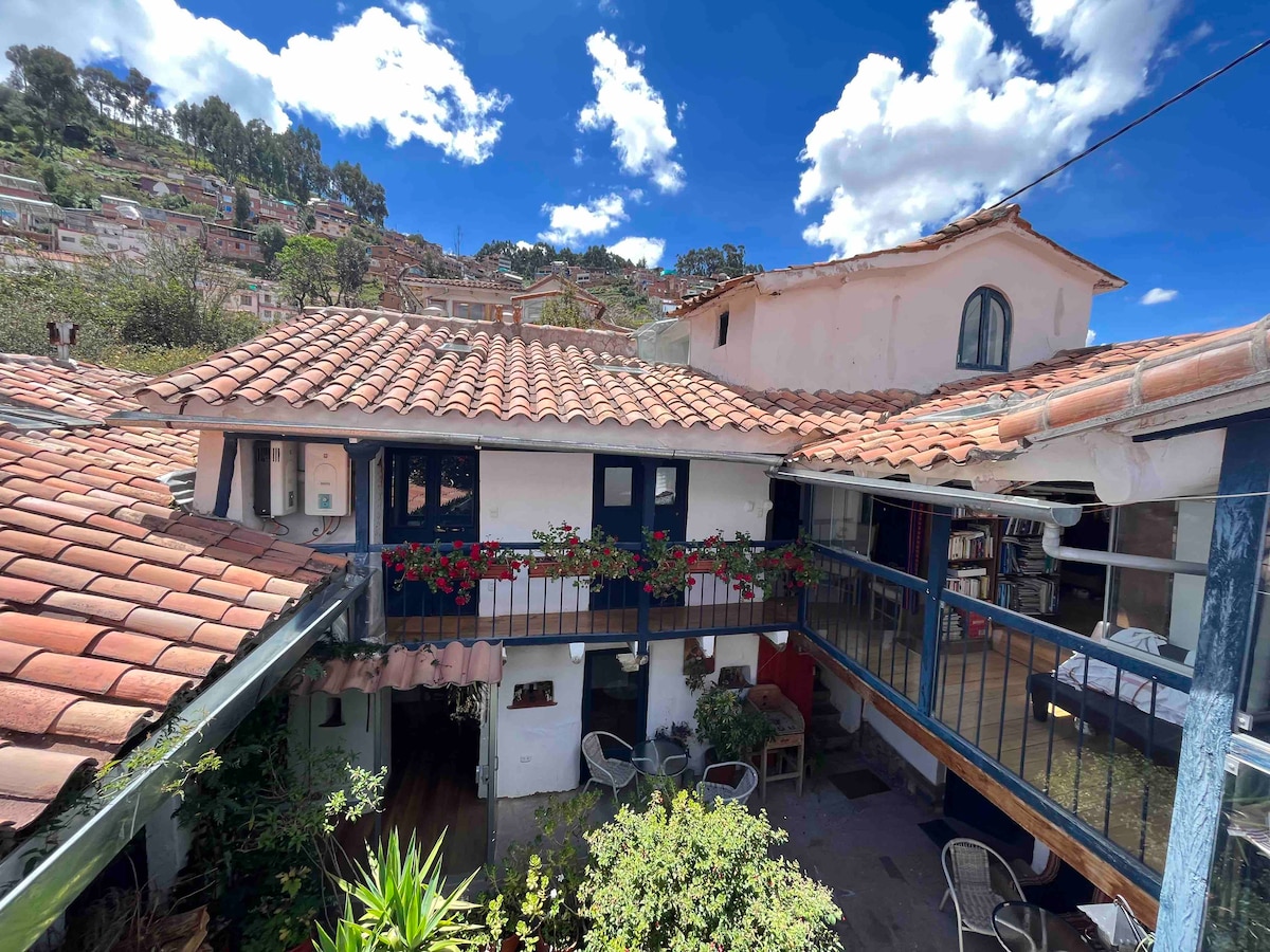 Τρία τετράγωνα από την πλατεία Plaza de Armas του Κούσκο βρίσκεται η σοφίτα στη γειτονιά San Blas στην καρδιά του ιστορικού κέντρου. Είναι μέρος ενός παραδοσιακού σπιτιού που ονομάζεται: Μπλε σπίτι αποικιακού στιλ με λευκούς τοίχους και μπλε μπαλκόνια. Το Μίνι διαμέρισμα διαθέτει υπνοδωμάτιο με πανοραμική θέα στο Κούσκο, παράθυρα, σαλόνι με τηλεόραση, κουζίνα, Wifi (οπτικές ίνες) NEFLIX, μπάνιο και εξοπλισμένη μίνι τραπεζαρία, ιδιωτική χρήση και υπηρεσίες 24 ώρες το 24ωρο. Πρόσβαση στο μπαλκόνι και την εσωτερική αυλή του σπιτιού.