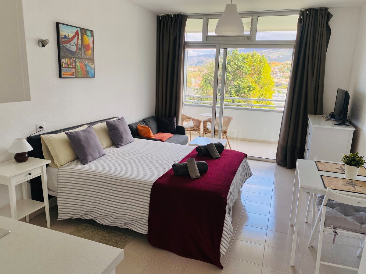 Ενοικιαζόμενο κατάλυμα για διακοπές με τροπική διακόσμηση, πολύ φωτεινό και μοντέρνο στον 8ο όροφο. Κυριολεκτικά μέσα σε 30 δευτερόλεπτα από την παραλία. Με υπέροχη θέα στον ωκεανό, καθώς και υπέροχη θέα στο ηφαίγειο Teide από μια επιπλωμένη βεράντα μπαλκονιού. Ένα υπέροχο στούντιο με 1 διπλό κρεβάτι και 1 καναπέ-κρεβάτι. Πλυντήριο ρούχων, δίκτυο wifi με οπτικές ίνες (600Mbps). Κοντά σε όλες τις ανέσεις, συμπεριλαμβανομένης της 24ωρης υπηρεσίας θυρωρού στην αίθουσα, γήπεδο τένις, 2 σολάριουμ σε πισίνα σε ψηλό κτίριο, 1 μεγάλη πισίνα, υπαίθριο γυμναστήριο.