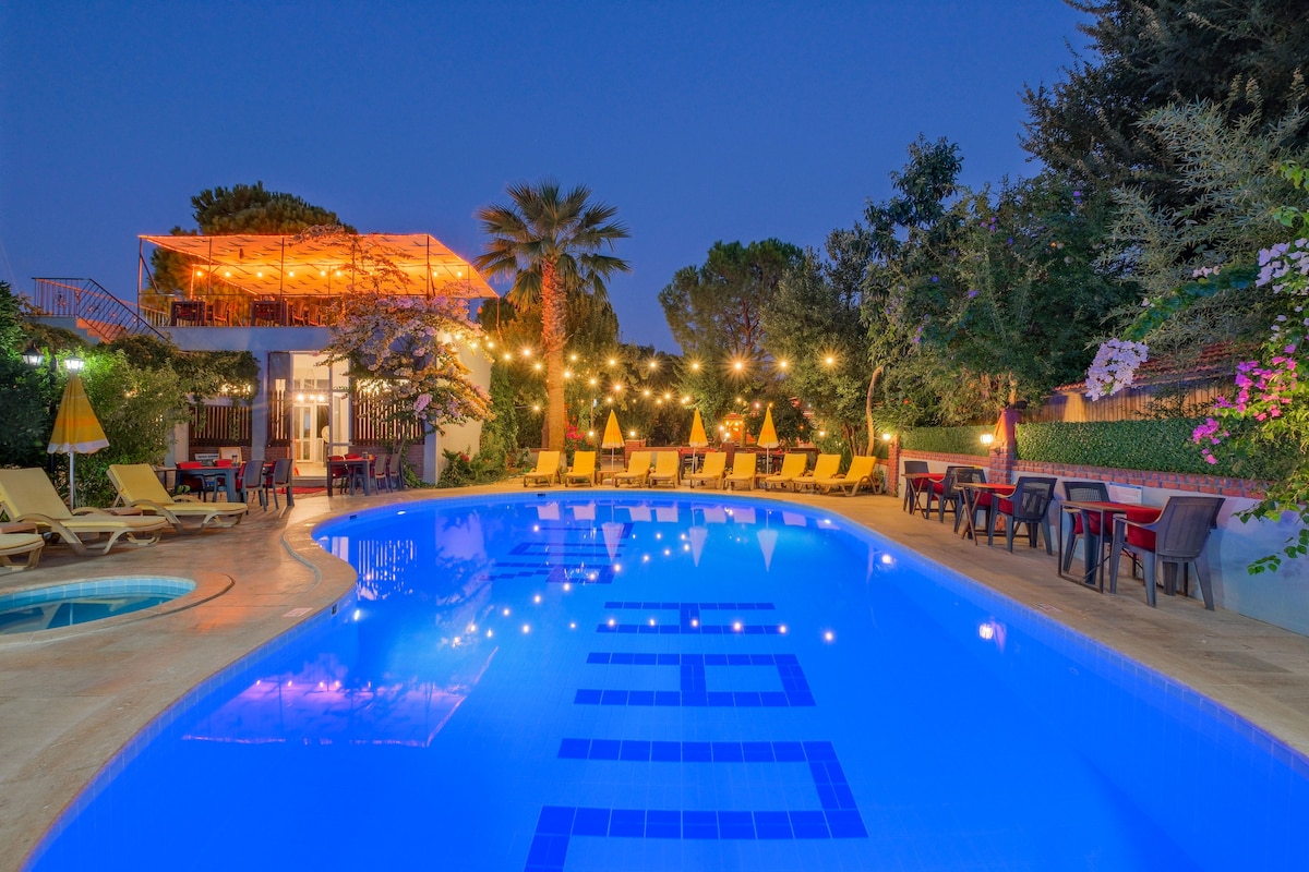 Μπορείτε να περάσετε τις διακοπές σας με τις κοινωνικές σας αποστάσεις στις βίλες του Μπανγκαλόου και κάτω από ελαιόδεντρα και άλλη ποικιλία δέντρων. Αεροδρόμιο μόλις 5 χιλιόμετρα μακριά, Sarigerme plaji 12 χιλιόμετρα, Fethiye 30 χιλιόμετρα, Gocek 15 λεπτά. ελάχιστη διαμονή 6 ημέρες
