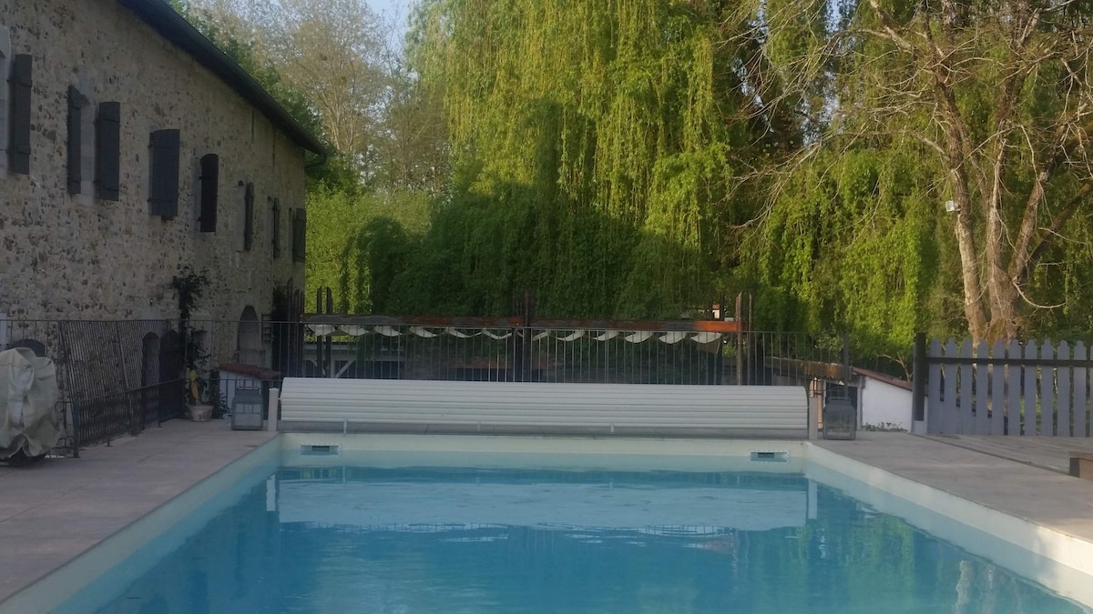 Ancien moulin converti en gîte - 15 couchages - sur un domaine de 4 ha de nature et de calme - étang, ruisseau, et prairie. Vous serez à Saint Etienne d'Orthe, (sud Landes) , à 25 km des plages Landaise et 35 km de la Côte Basque, idéalement situé pour découvrir la région. Le gîte est aménagé pour partager des moments conviviaux en famille ou entre amis! Spacieux et chaleureux, le gîte accueille de grands groupes . Des prix ajustés - avec réductions pour séjours prolongés