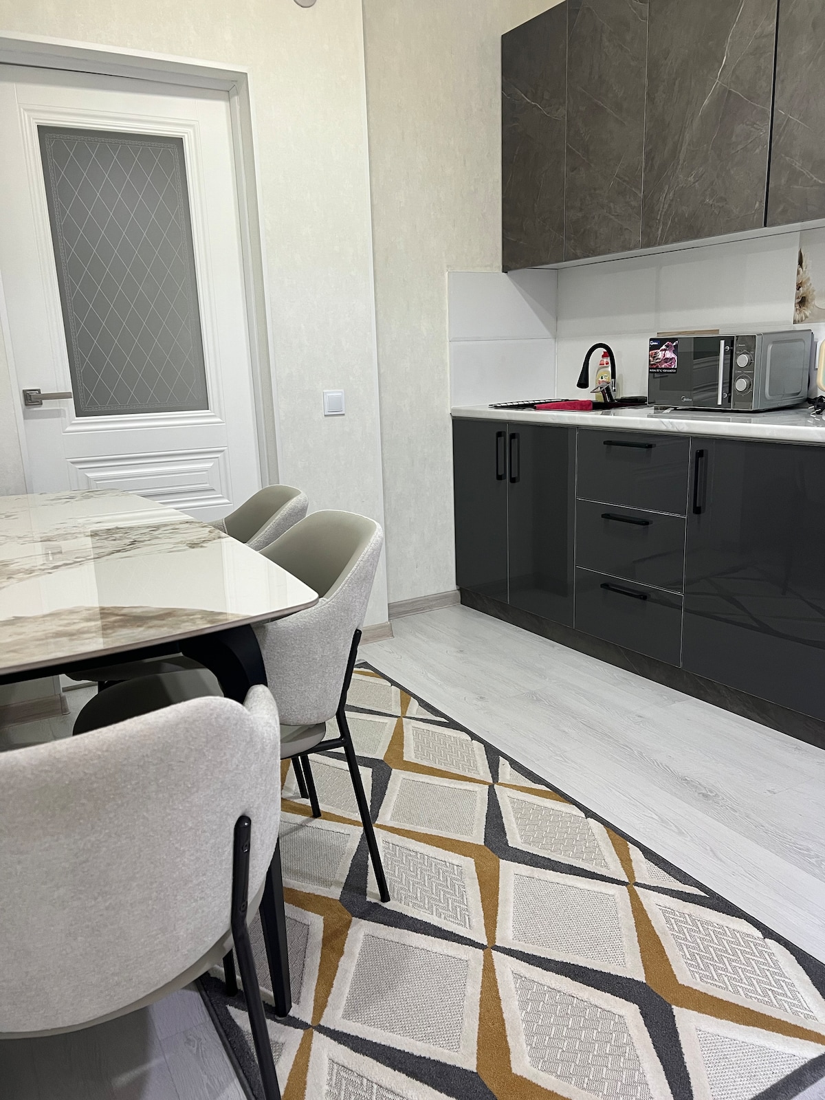 Уютная квартира с современным интерьером в тихом и безопасном районе — Резиденция B. Полностью оборудованная кухня, кондиционер, Wi-Fi, стиральная машина, свежие полотенца и постельное бельё. Уютная спальня, просторная гостиная и балкон для отдыха. Рядом магазины, кафе и транспорт. Идеально для пары, семьи или деловой поездки. Быстрое заселение и забота о каждом госте!