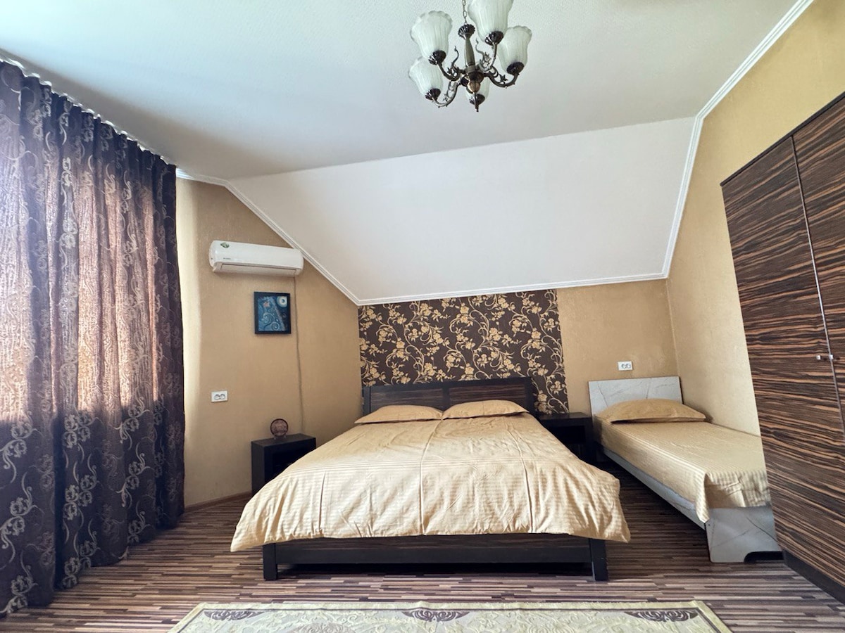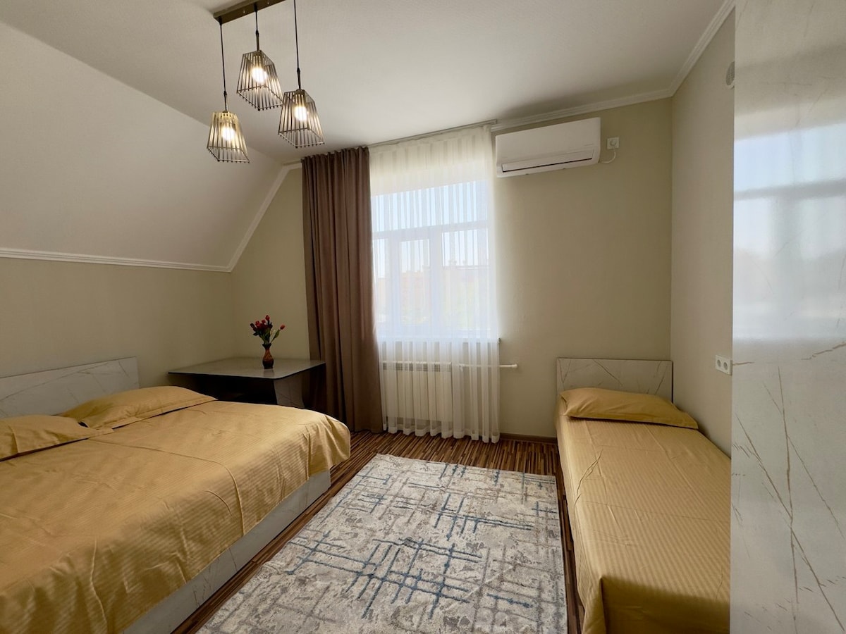 Αυτό το άνετο δωμάτιο προσφέρει μια ήρεμη διαμονή με ιδιωτικό μπάνιο, άνετα κρεβάτια και πρόσβαση σε κοινόχρηστη κουζίνα και κήπο. Μόλις 15 λεπτά από την καρδιά της Osh. - Περιτριγυρισμένο από τη φύση. - Καθαρίστε τα σεντόνια και τις πετσέτες - Δωρεάν στάθμευση. - Γρήγορο Wi-Fi 🍽 Παραδοσιακό πρωινό Κιργιστάν (κατόπιν αιτήματος) Ανεξάρτητα από το αν ταξιδεύετε μόνος/η, με μικρή ομάδα ή ως ψηφιακός νομάς, θα απολαύσετε την τοπική φιλοξενία και την ήρεμη ατμόσφαιρα αυτού του γαλήνιου χώρου διαμονής.