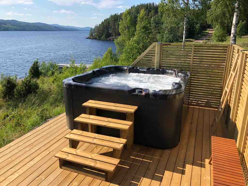 Semesterparadis bastu och badtunna i lugn natur