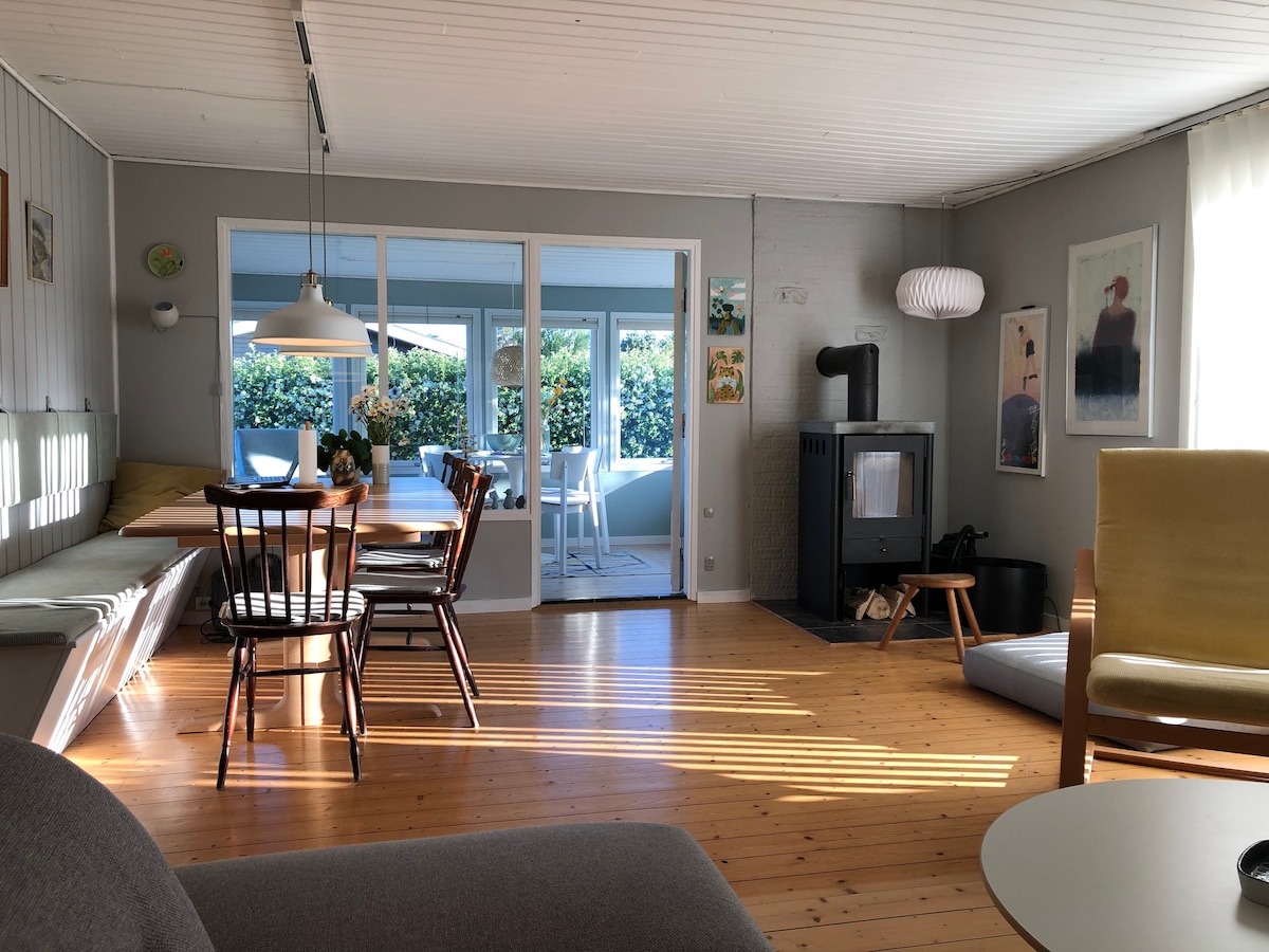 Άνετο εξοχικό σπίτι μέσα στην πανέμορφη φύση και 300 μέτρα από τη θάλασσα. Το καλοκαιρινό σπίτι, με εμβαδό 85 m² (915 τ. πόδια) και βοηθητικό κτίριο 25 m² (269 τ. πόδια), προσφέρει 6 θέσεις ύπνου στο σπίτι και 2 στο βοηθητικό κτίριο – ιδανικό για άνετες διακοπές. Γύρω από το σπίτι υπάρχει μια όμορφη ξύλινη βεράντα, πράγμα που σημαίνει ότι μπορείτε να απολαμβάνετε τον ήλιο, το πορτοκαλένιο και το υπαίθριο σπα και το τζάκι όλη την ημέρα. The summerhouse is located at the end of a main road and is a small oasis of tranquility in the middle of beautiful nature, where you can expect to be visit by fapses, squirrels and deer. Δεν επιτρέπονται τα κατοικίδια