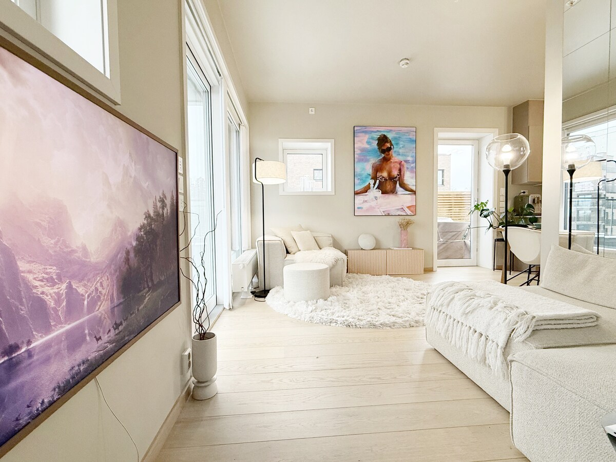 NYOPPUSSERT LEILIGHET PÅ 34 KVM +TERRASSE PÅ 24 KVM Opplev sjarmerende leilighet rett utenfor sentrum av Oslo, kun 17 minutters reisevei fra bykjernen. Her finner du den perfekte balansen mellom ro og tilgjengelighet til byen. Leiligheten ligger i et fredelig og stille nabolag, omgitt av vakker natur med skog i nærheten. Her kan du oppleve det beste av Oslo uten byens støy