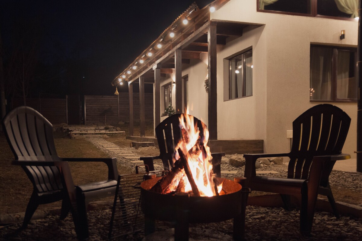 Deconectează-te departe de lume și zgomot de fond, într-un loc plin de istorie, culoare și natură. Casa stil AFrame va fi doar a ta, curtea și livada de 3000mp doar ale tale și uneori le poți împărți cu căprioare. Casa are un living openspace de 50mp, un dormitor la etaj, baie cu apă caldă, bucătărie complet utilată și suprafețe vitrate generoase ca să vezi noaptea cerul. Dacă totuși îți dorești și tehnologie, o să ai AC cu inteligență artificială, SmartTV, internet Wifi in/out Starlink, XBox…