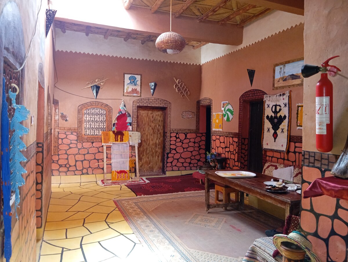 maison en plein coeur d un village berbere .a 3 min a pied de l oasis .coin de verdure perdu en plein melieu deep nul part.bien pour ce relaxer .lire .rondonner .venir vivre la convivialite voir la vie des berberes possibilite d a prendre des cours de cuisine a faire de jembe .plein d excursions proposer dans les gorges .kasbah.vallee palmeraie .desert dune de sable avec nuit sous tente berbere et balade en dromadaire