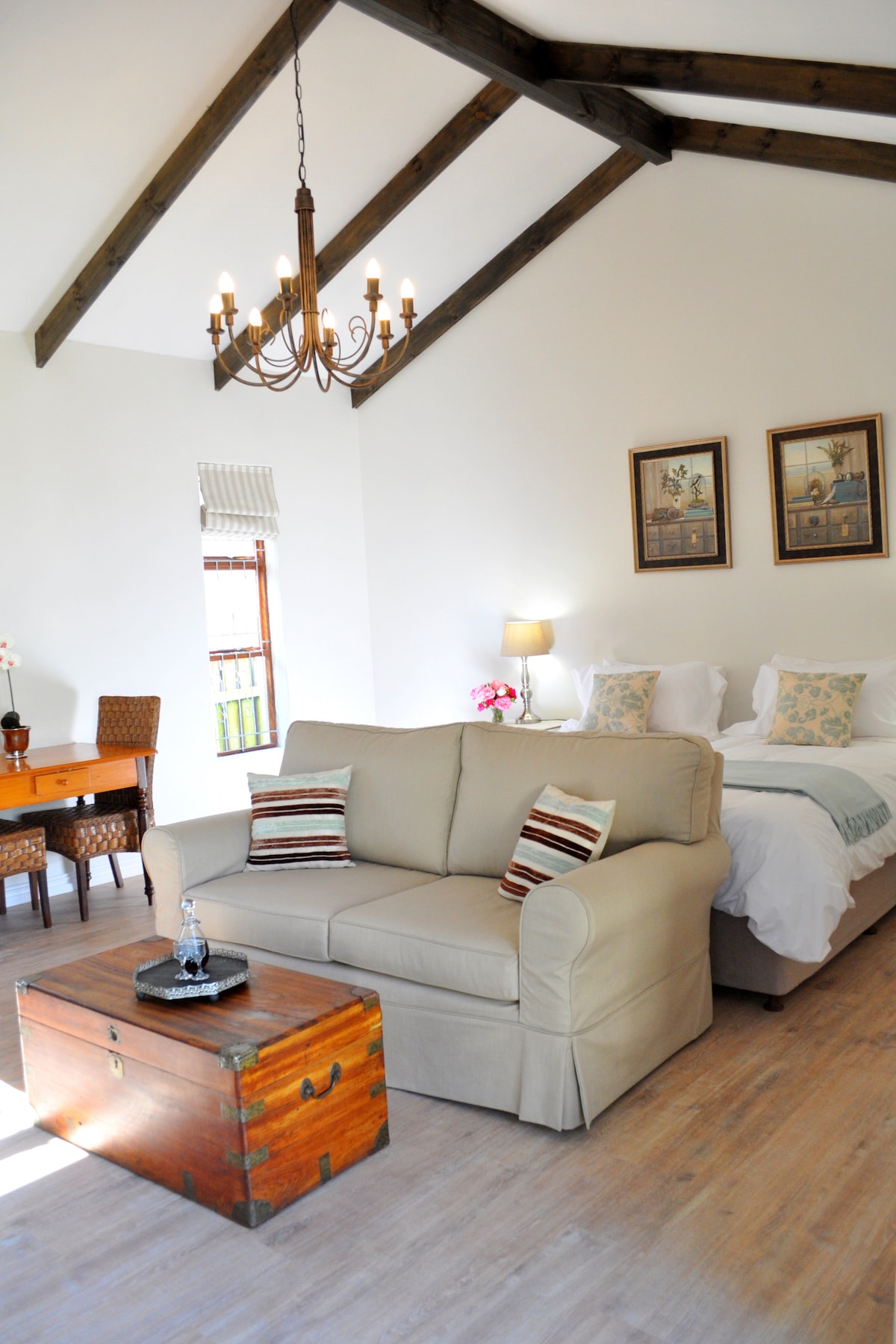 Be enticed by the awakening of your senses. Smell the sweet scent of the flowers and fynbos, the serenade of the frogs, the sight of colorful birds, taste the aroma of fruits and veggies from our vegetable garden and orchard. Ideal for a couple or a couple with a child (not suitable for 3 adults). Mountain, garden, pond (filled with rainfall, season dependent. Not just a room in someone's house or sharing common areas. Your own little piece of tranquility. Our dogs roam freely in the property.