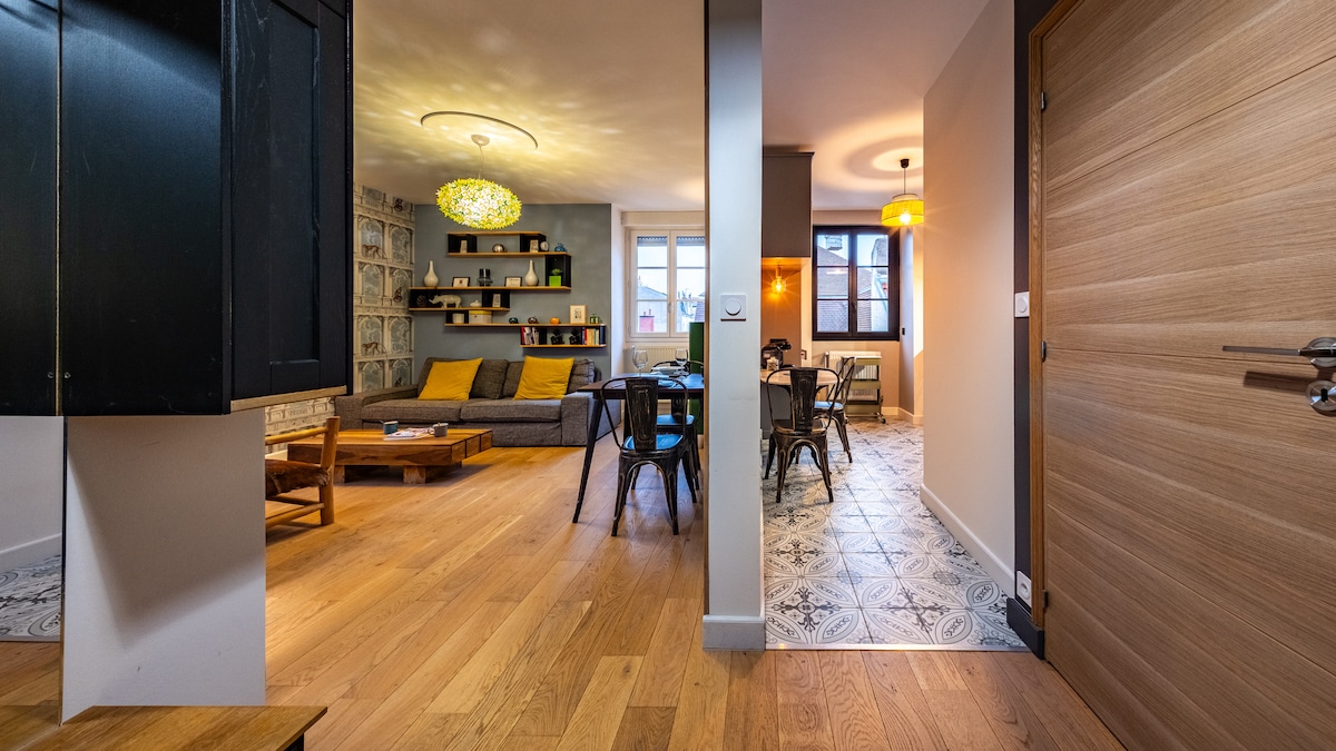 Έχουμε ανακαινίσει πλήρως το διαμέρισμά μας στο κέντρο της πόλης για να το κάνουμε ένα ζεστό και ευχάριστο χώρο διαβίωσης. Όλα έχουν σχεδιαστεί για την άνεσή σας: ένα φιλόξενο σαλόνι, μια εξοπλισμένη κουζίνα, ένα υπνοδωμάτιο με άνετα κλινοσκεπάσματα και ένα σύγχρονο μπάνιο. Θα βρείτε όλα όσα χρειάζεστε για μια ξέγνοιαστη διαμονή: WiFi, πλυντήριο ρούχων, πιστολάκι μαλλιών... Είτε ταξιδεύετε είτε μετακινείστε, θα χαρούμε να σας καλωσορίσουμε!