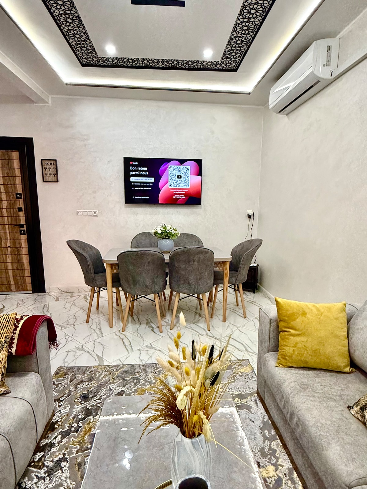 Το διαμέρισμα βρίσκεται στο κέντρο της πόλης, κοντά σε όλες τις ανέσεις. Είναι ακριβώς από το νέο Wilaya και το νέο αστυνομικό τμήμα. Φιλοξενεί κυρίως ένα ζευγάρι (2 άτομα), αλλά έχει επίσης κρεβάτια για δύο άτομα στους καναπέδες του σαλονιού. Το διαμέρισμα είναι πολύ καλά εξοπλισμένο (μοντέρνα εξοπλισμένη κουζίνα, τηλεόραση με πολλά ξένα κανάλια σε HD: Γαλλικά, Ισπανικά...).