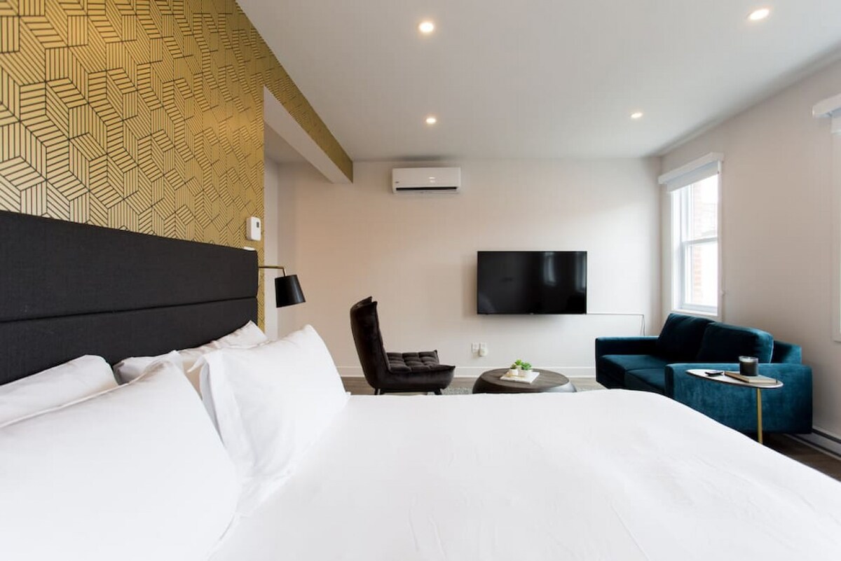 Welcome to our stylish 1-bedroom unit in Little Italy, Montreal! Designed for comfort and convenience, our space is perfect for business travellers. Accessible by a common elevator in a well-maintained building, enjoy a charming atmosphere. Relax in a cozy queen-size bed, use the fully equipped kitchen, and unwind in the spacious bathroom and tub. Stay connected with free wifi, and Netflix, and enjoy a welcome starter amenity kit with fresh coffee and treats.