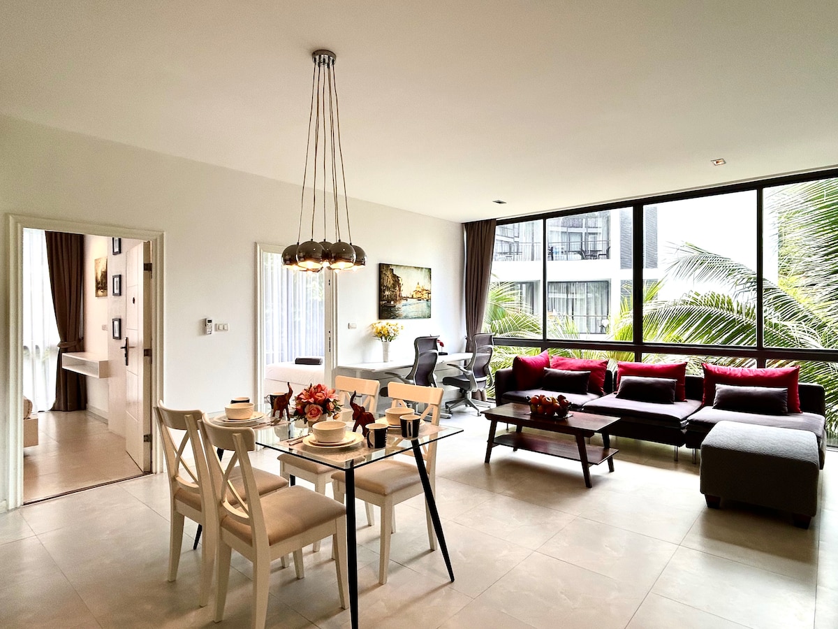 Η φανταστική τοποθεσία στην πλαγιά του λόφου προσφέρει υπέροχη θέα στη θάλασσα, την οποία μπορείτε να απολαύσετε από τα διαμερίσματα ενός υπνοδωματίου. Τα παράθυρα από τον τοίχο μέχρι την οροφή όχι μόνο παρέχουν μέγιστη θέα στη γαλαζοπράσινη θάλασσα και τον γαλάζιο ουρανό, αλλά επιτρέπουν επίσης άφθονο φυσικό φως στους χώρους διαβίωσης. Το ευρύχωρο μπαλκόνι έχει όλο το πλάτος του διαμερίσματος και είναι προσβάσιμο από το σαλόνι και το υπνοδωμάτιο, έναν ιδιωτικό χώρο για να χαλαρώσετε και να εκτιμήσετε το τροπικό περιβάλλον.