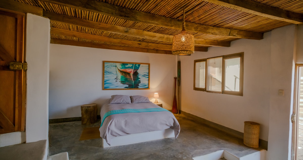 Μπροστά στον ωκεανό, με μεγάλη βεράντα και προνομιακή θέα στο σημείο του σερφ. Άμεση πρόσβαση στην παραλία. Μινιμαλιστικό στιλ, χτισμένος πηλός, ξύλο και μπαστούνι. Ρουστίκ και άνετο ντιζάιν. 3 ευρύχωρα και ανεξάρτητα δωμάτια. Κοινωνικός χώρος: σαλόνι, τραπεζαρία, κουζίνα, βεράντα. 3 Χώροι στάθμευσης. Πλυντήριο. Ζεστο νερο. Κουζίνα, ψυγείο, ψησταριά, χωμάτινος φούρνος.