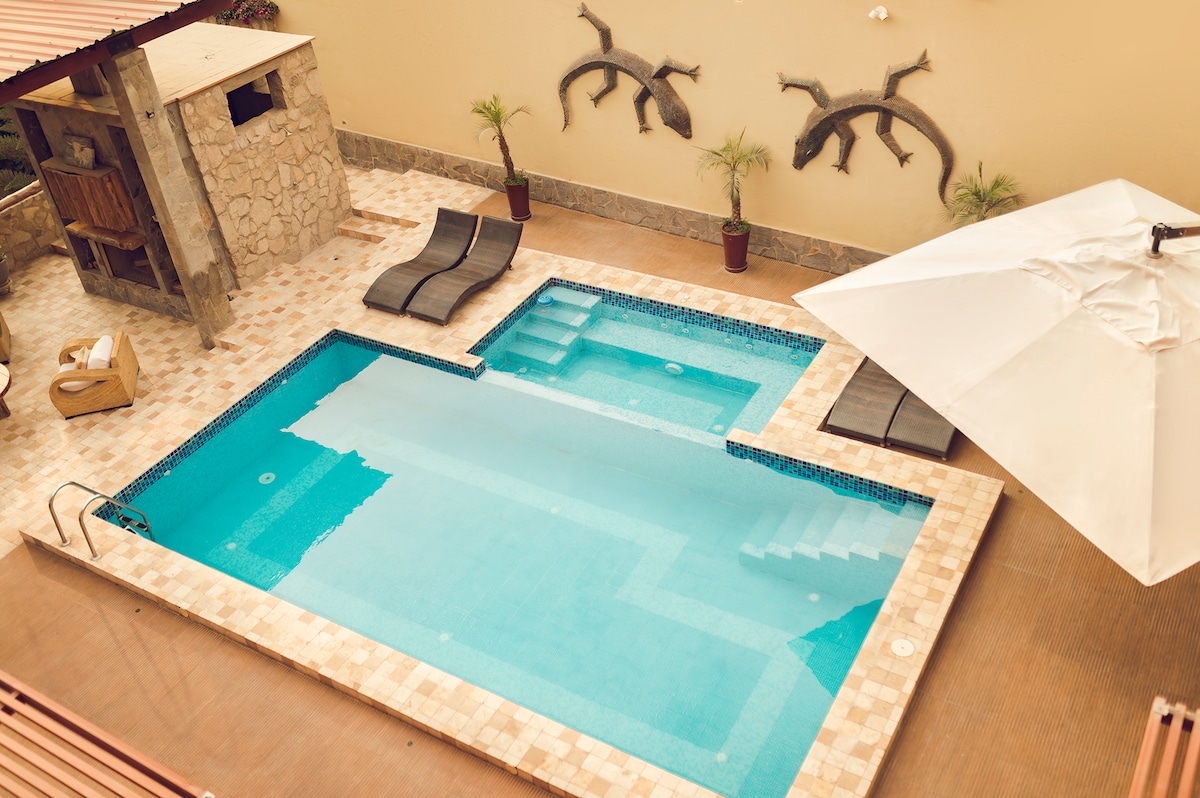 Απολαύστε τον τέλειο συνδυασμό σχεδιασμού και άνεσης στο ευρύχωρο σπίτι μας. Πρόσφατα ανακαινισμένα μπάνια, πολλαπλοί εξωτερικοί χώροι διαβίωσης και καταπράσινοι κήποι, ιδανικοί για παρατήρηση πτηνών. Βρίσκεται σε μια ηλιόλουστη, ήρεμη περιοχή της Λίμα με αποκλειστική πρόσβαση σε όλες τις παροχές, καλά εξοπλισμένη κουζίνα, πισίνα και αξιόπιστο WiFi. Περπατήστε μέχρι τις αγορές, τις καφετέριες, τα εστιατόρια, τα φαρμακεία και πολλά άλλα. Είτε αναζητάτε χαλάρωση είτε ψυχαγωγία, το κατάλυμά μας προσφέρει το ιδανικό καταφύγιο για τη διαμονή σας στη Λίμα.