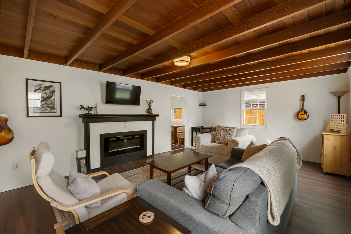 3rd night Free all year except July-Aug! Enjoy all Long Beach has to offer at this peaceful and centrally located mid-century one story. Walkable to restaurants, bars, farmers market, bakery, Scoopers and most important; THE BEACH! You can hear the ocean, see kites aloft and fireworks during festivals from your porch. Set amid 65 acres of city parklands might even see a deer. Full kitchen, TVs, elec fireplace, beach chairs, clam guns and games. Path to beach! 33% discount = 3rd night free.