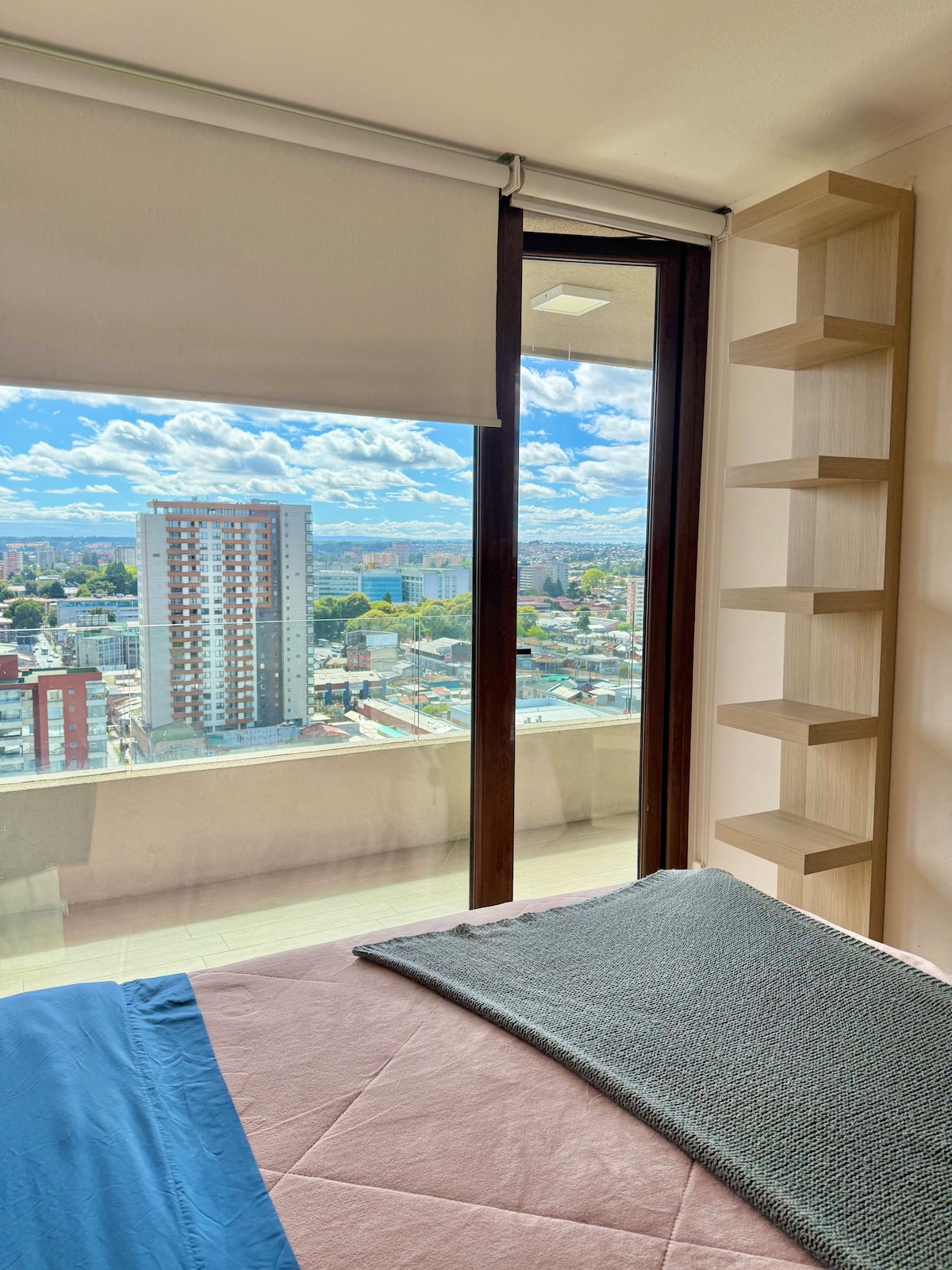 Υπέροχο νέο διαμέρισμα, επιπλωμένο, με εξαιρετική θέα, ψηλότερος όροφος στο Temuco, στο κέντρο της πόλης. Φυσικό φως όλη την ημέρα και ένα εξαιρετικό ηλιοβασίλεμα. Περιλαμβάνει χώρο στάθμευσης. Λευκά είδη, είδη περιποίησης, πετσέτες, καφετέριες, καρυκεύματα κ.λπ. 2 υπνοδωμάτια, 2 μπάνια. 2 διπλά κρεβάτια + άνετο κρεβάτι φουτόν. Ασφάλεια 24 ώρες το 24-ωρο. Δεν επιτρέπεται το κάπνισμα. Δεν επιτρέπονται τα κατοικίδια. Οι τιμές αλλάζουν ανάλογα με τον αριθμό των ατόμων.