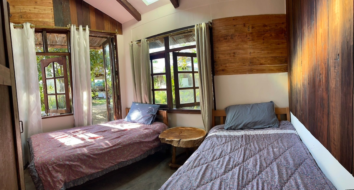 Μπουτίκ σπίτι στην καρδιά του Pai - μόλις λίγα λεπτά με τα πόδια από την Walking και μια σύντομη διαδρομή με το αυτοκίνητο από τα τοπικά αξιοθέατα. Το κατάλυμά μας διαθέτει 2 υπνοδωμάτια (ένα κύριο, ένα με καναπέ-κρεβάτι), ένα δεύτερο μπάνιο σε ξεχωριστό δωμάτιο, μια κουζίνα με γυάλινους τοίχους και έναν άνετο χώρο καθιστικού. Όλα τα δωμάτια ανοίγουν σε μπαλκόνι με θέα στον κήπο, με ιδιωτική πρόσβαση στον κήπο. Περιτριγυρισμένο από δέντρα μάνγκο και jackfruit, είναι ιδανικό για ζευγάρια, σόλο ταξιδιώτες ή ένα ζευγάρι +1 που αναζητά μια ειρηνική διαμονή στην καρδιά του Pai
