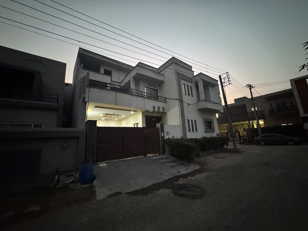 ASNB Residence - ένα μοντέρνο εξοχικό αγροτόσπιτο στην καρδιά του Μουλτάν. Αυτός ο κομψά διαμορφωμένος χώρος προσφέρει μια ήρεμη απόδραση με ένα εκπληκτικό γυάλινο σαλόνι με θέα στη φύση, κομψά υπνοδωμάτια με ιδιωτικά μπάνια, έναν άνετο χώρο τηλεόρασης και έναν εκλεπτυσμένο χώρο τραπεζαρίας. Βουτήξτε στη μεγάλη ιδιωτική πισίνα ή χαλαρώστε δίπλα στο νερό. Το καταπράσινο γκαζόν είναι ιδανικό για συναθροίσεις, πάρτι ή ήρεμα πρωινά. Το ASNB Residence είναι ο προορισμός σας για άνεση, πολυτέλεια και αξέχαστες αναμνήσεις.