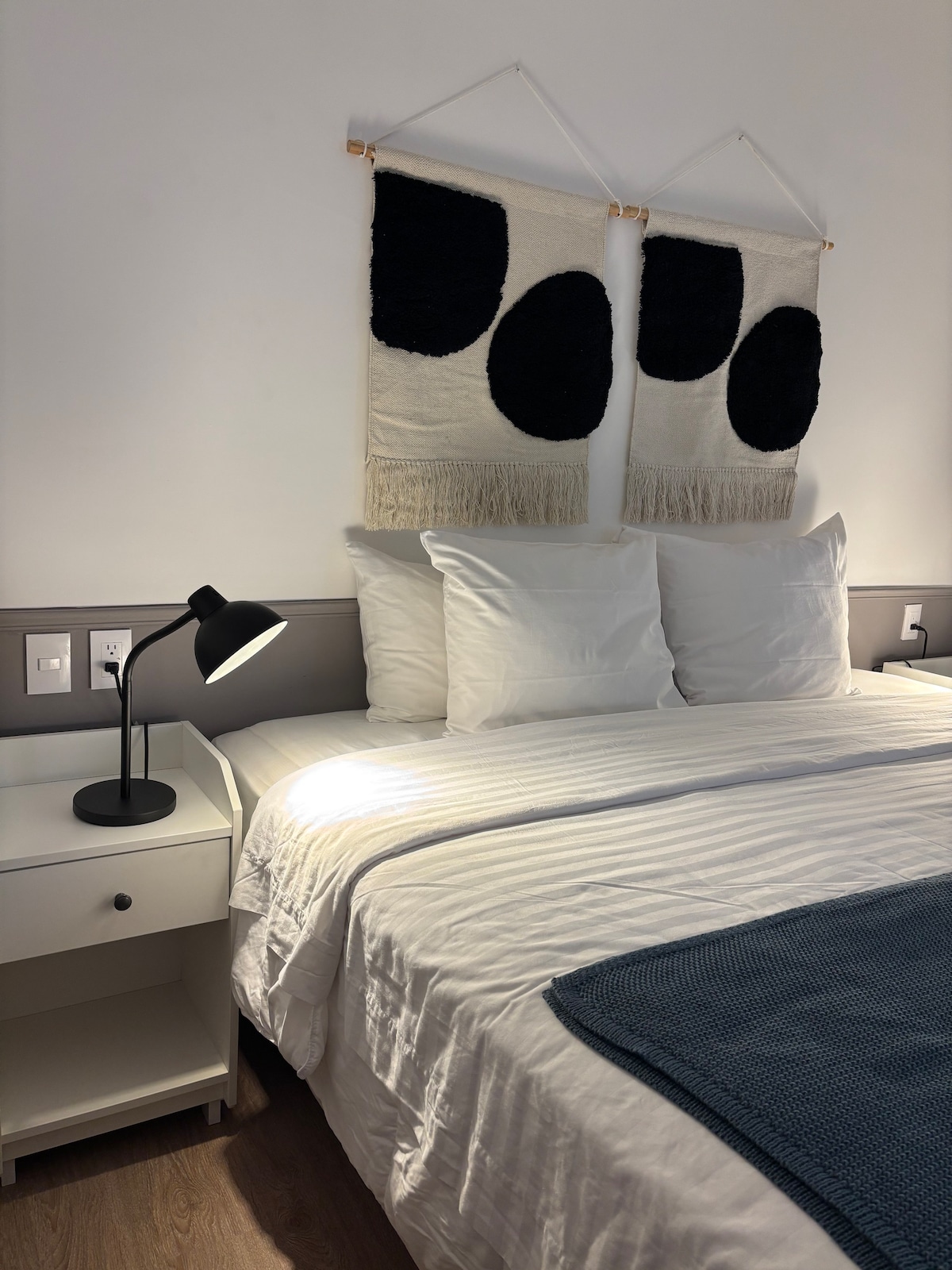 Ανάψτε την καφετιέρα και καθίστε σε μια πολυθρόνα στα μέσα του αιώνα για ένα αργό πρωινό σε ένα γαλήνιο κατάλυμα στην πόλη. Ένας γεωμετρικός ανάγλυφος τοίχος σε έντονο λευκό χρώμα δίνει μια φουτουριστική αίσθηση σε αυτόν τον φωτεινό χώρο με μπαλκόνι και έναν ήσυχο κοινόχρηστο κήπο. ΣΗΜΕΊΩΣΗ: Για να χρησιμοποιήσετε τις παροχές, πρέπει να κάνετε κράτηση για 50 λεπτά. Απαγορεύονται οι βόλτες.
