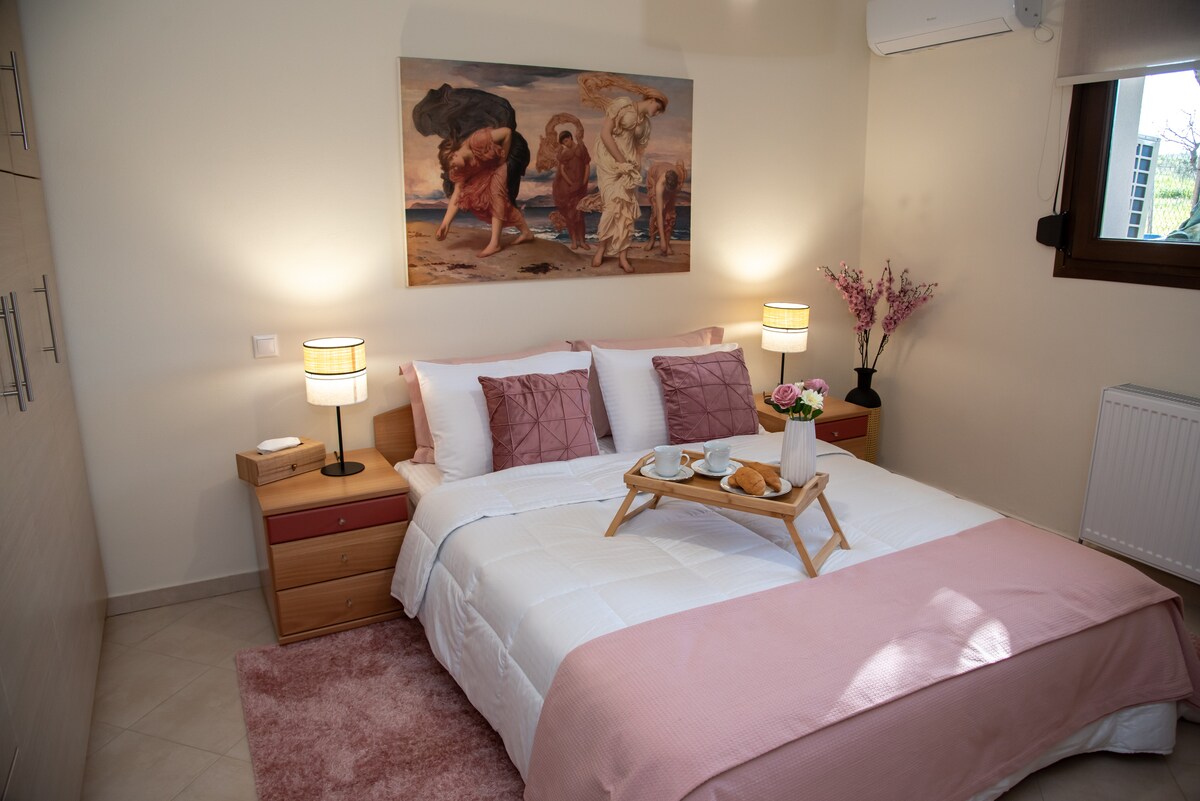 Πλήρως ανακαινισμένο διαμέρισμα με φινετσάτη αισθητική σε ένα από τα κεντρικότερα σημεία της πόλης, στον δεύτερο όροφο με πρόσβαση από τις σκάλες. Ευρύχωρο, ζεστό, μοντέρνο, ικανό να σας κλέψει την καρδιά. Αποτελείται από έναν ενιαίο χώρο που περιλαμβάνει σαλόνι-κουζίνα και queen size κρεβάτι με ανατομικό στρώμα αφρού. Ο άριστης ποιότητας καναπές γίνεται κρεβάτι και ο χώρος είναι ικανός να φιλοξενήσει με άνεση 4 άτομα. Σε περίπτωση περισσότερων ατόμων το σπίτι διαθέτει και άλλο υπνοδωμάτιο.