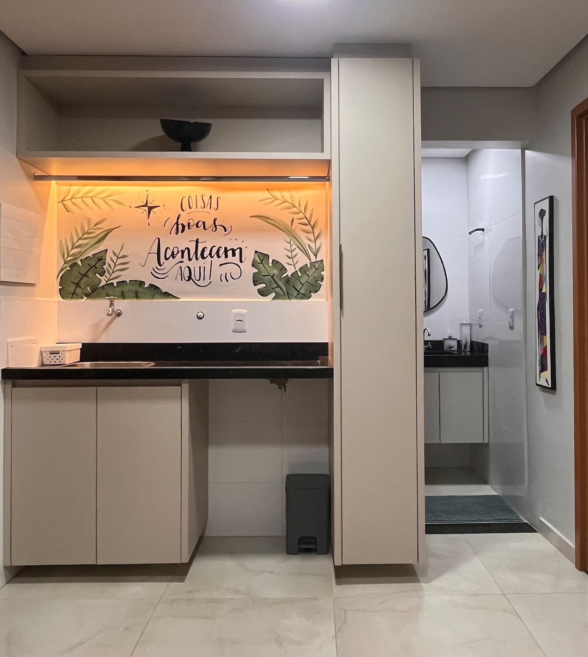 Άνετο και λειτουργικό κατάλυμα, ιδανικό για εργένηδες ή ζευγάρια. Αέρινο σαλόνι με τετραθέσιο καναπέ, κουζίνα εξοπλισμένη με σκεύη, μίνι μπαρ και φούρνο μικροκυμάτων, σίδερο και καφετιέρα. Άνετο υπνοδωμάτιο, μπάνιο με καλή ντουζιέρα. Καθαρό, φωτεινό και καλά αεριζόμενο περιβάλλον. Εξαιρετική τοποθεσία, ένα τετράγωνο από το εμπορικό κέντρο Capim Dourado. Άνεση και πρακτικότητα για τη διαμονή σας. Κάντε κράτηση τώρα!