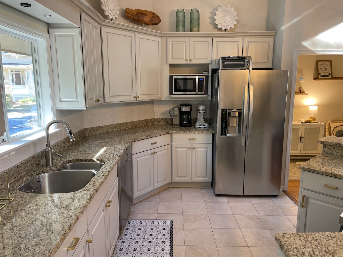 5-10 λεπτά με τα πόδια από την παρθένα παραλία Hilton Head, αποδράστε στην ευρύχωρη βίλα σας στο Queen's Grant of Palmetto Dunes. Με σχεδόν 1500 τετραγωνικά πόδια και ψηλά ταβάνια, μπορείτε να απλωθείτε άνετα. Νέα έπιπλα σαλονιού που όλα ανακλίνουν, εκπληκτικό στρώμα αφρού μνήμης πράσινου τσαγιού king size και στα δύο υπνοδωμάτια και πλήρως εξοπλισμένη κουζίνα (μπλέντερ, φρυγανιέρα, φούρνος, κροκ ποτ+.) Το κύριο υπνοδωμάτιο και το σαλόνι ανοίγουν σε ένα ιδιωτικό πίσω αίθριο εξοπλισμένο με ψησταριά, τραπέζι τραπεζαρίας και αξεσουάρ παραλίας.