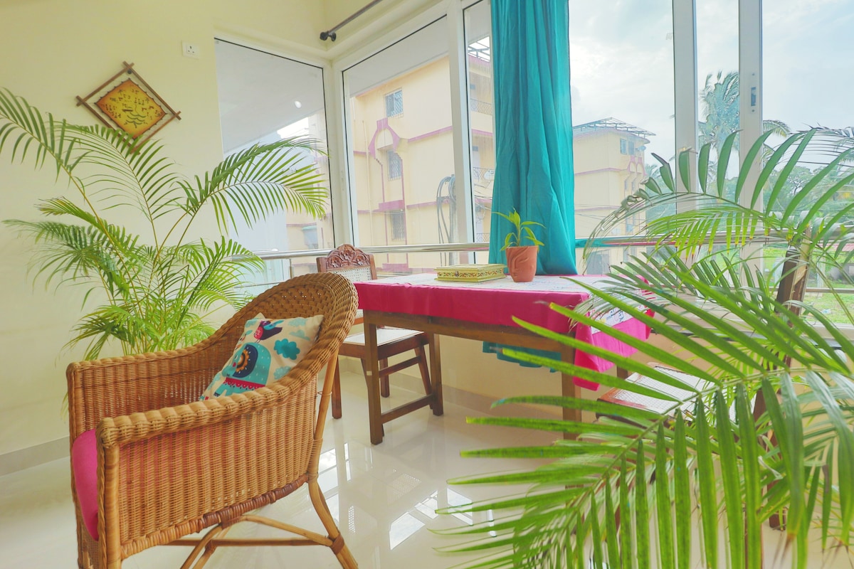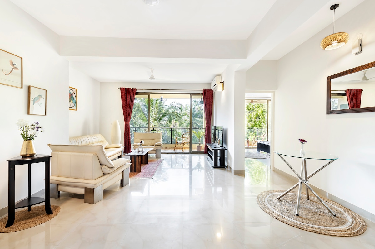 Χαλαρώστε και νιώστε γαλήνη μέσα σας! Μια τέλεια οικογενειακή απόδραση. Ελάτε να μείνετε μαζί μας για να νιώσετε ακόμα καλύτερα από ό,τι στο σπίτι σας. Απολαύστε αδιάλειπτη σύνδεση Wi-Fi με πλήρη εφεδρική τροφοδοσία. Ελάτε ως επισκέπτες και φύγετε ως οικογένεια. Φιλοξενούμε την ψυχική σας ηρεμία στο άνετο διαμέρισμα με κλιματισμό!Ετοιμάστε ένα γρήγορο σνακ ή πηγαίνετε στις καλύβες της παραλίας. Πηδήξτε στην πισίνα ή κάντε μια βουτιά στη θάλασσα. 🌊 Πηγαίνετε για τρέξιμο στην παραλία ή στο πλήρως εξοπλισμένο γυμναστήριο! Εξερευνήστε τη μοναδικότητα της Νότιας Γκόα και απολαύστε μια ήρεμη διαμονή. 😎