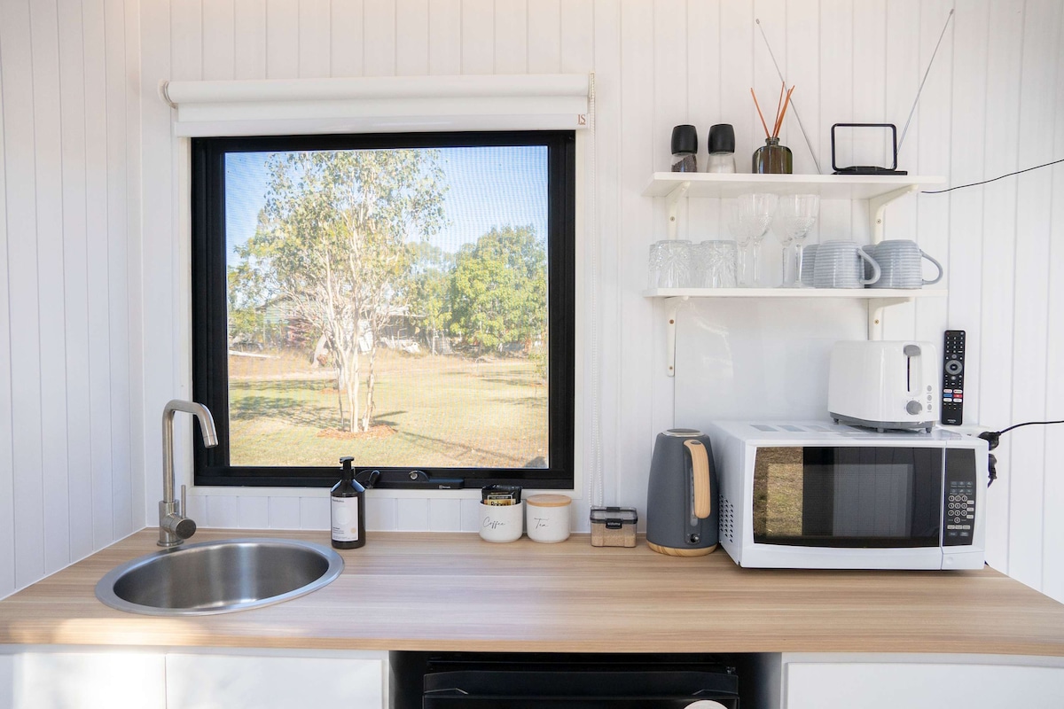 Νιώστε άνετα σε ιδιωτικό, γαλήνιο, φυσικό περιβάλλον. Τα καλύτερα και των δύο κόσμων - στη φύση και μόνο 5 λεπτά από τα πλησιέστερα καταστήματα. 25 λεπτά από το CBD. Υπάρχει άφθονος χώρος για τρέιλερ ή τροχόσπιτα. 75 μέτρα από την κύρια κατοικία και μοιράζεται ένα ακίνητο 20 στρεμμάτων και κήπο με ένα border collie, wallabies, blue winged kookaburras, chooks, μέλισσες, αγελάδες και την οικογένειά μας. Ακολουθήστε την Jess για γιόγκα και καφέ την Παρασκευή και το Σάββατο το πρωί, αν θέλετε, στην άλλη πλευρά του κήπου του τροπικού δάσους.