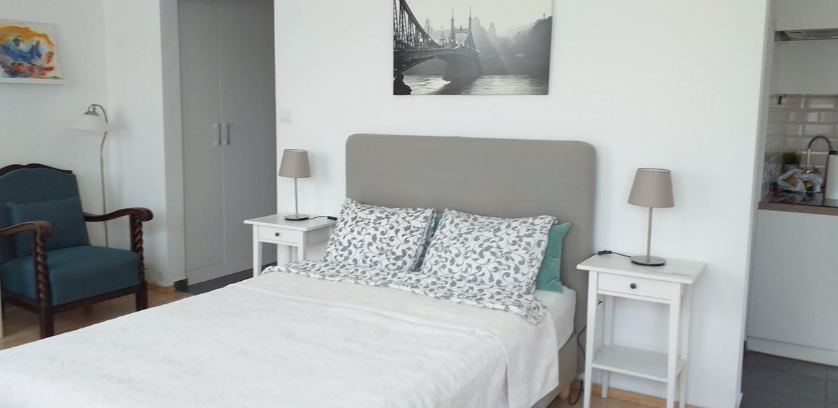 Σε ένα νέο κτίριο στην 3η συνοικία της Βουδαπέστης έχουμε 3 υπέροχα στούντιο προς ενοικίαση. Νέο και πολύ πρακτικό, άνετο διαμέρισμα - και έμπειροι οικοδεσπότες. Προσφέρουμε όλες τις απαραίτητες παροχές: σεντόνια, πετσέτες, γρήγορο wifi, αφρόλουτρο, πιστολάκι μαλλιών κ.λπ. και ακόμη περισσότερα: έναν αυτοσχεδιασμό οδηγό για την πόλη γεμάτο με τις καλύτερες προτάσεις. Στην κλειδωμένη εσωτερική αυλή μας μπορείτε να σταθμεύσετε με χαμηλή ημερήσια χρέωση (αυτός ο χώρος δεν καλύπτεται με στέγη). Αν έχετε οποιαδήποτε ερώτηση, μη διστάσετε να επικοινωνήσετε μαζί μας! :)