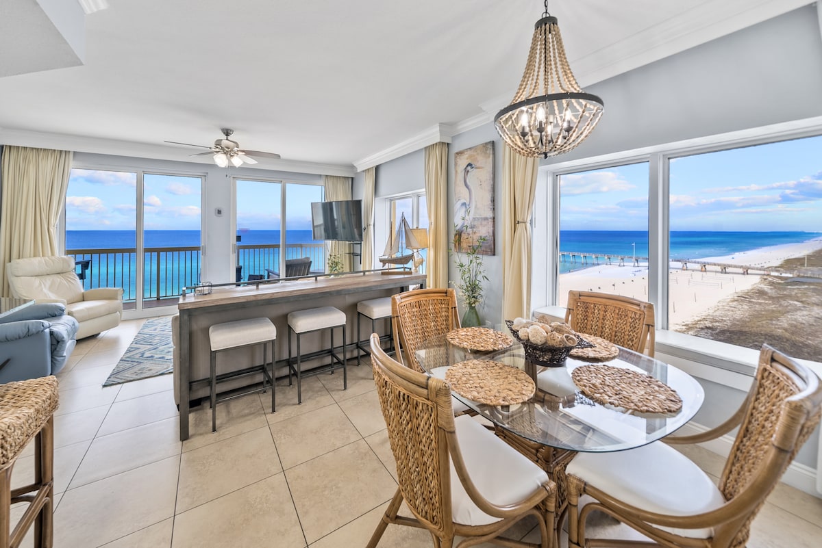 Ξυπνήστε στον ρυθμό της παλίρροιας σε αυτό το πολυτελές παραθαλάσσιο καταφύγιο με βαθμολογία A+. Στον 5ο όροφο, το κατάλυμα 517 προσφέρει εκπληκτική πανοραμική θέα στη θάλασσα και μια κομψή, μοντέρνα κουζίνα για την απόλυτη παραθαλάσσια απόδραση. Βγείτε έξω και είστε στην καρδιά όλων αυτών. Περπατήστε μέχρι το Pier Park για γεύματα παγκόσμιας κλάσης, επισκεφτείτε το Gulf World ή εξερευνήστε τα καλύτερα μπαρ και καταστήματα στο PCB. Πολυτέλεια, άνεση και η Σμαραγδένια Ακτή στο κατώφλι σας. Δεν είναι απλώς μια διαμονή, είναι μια εμπειρία. Κάντε κράτηση για τον παράδεισό σας τώρα!
