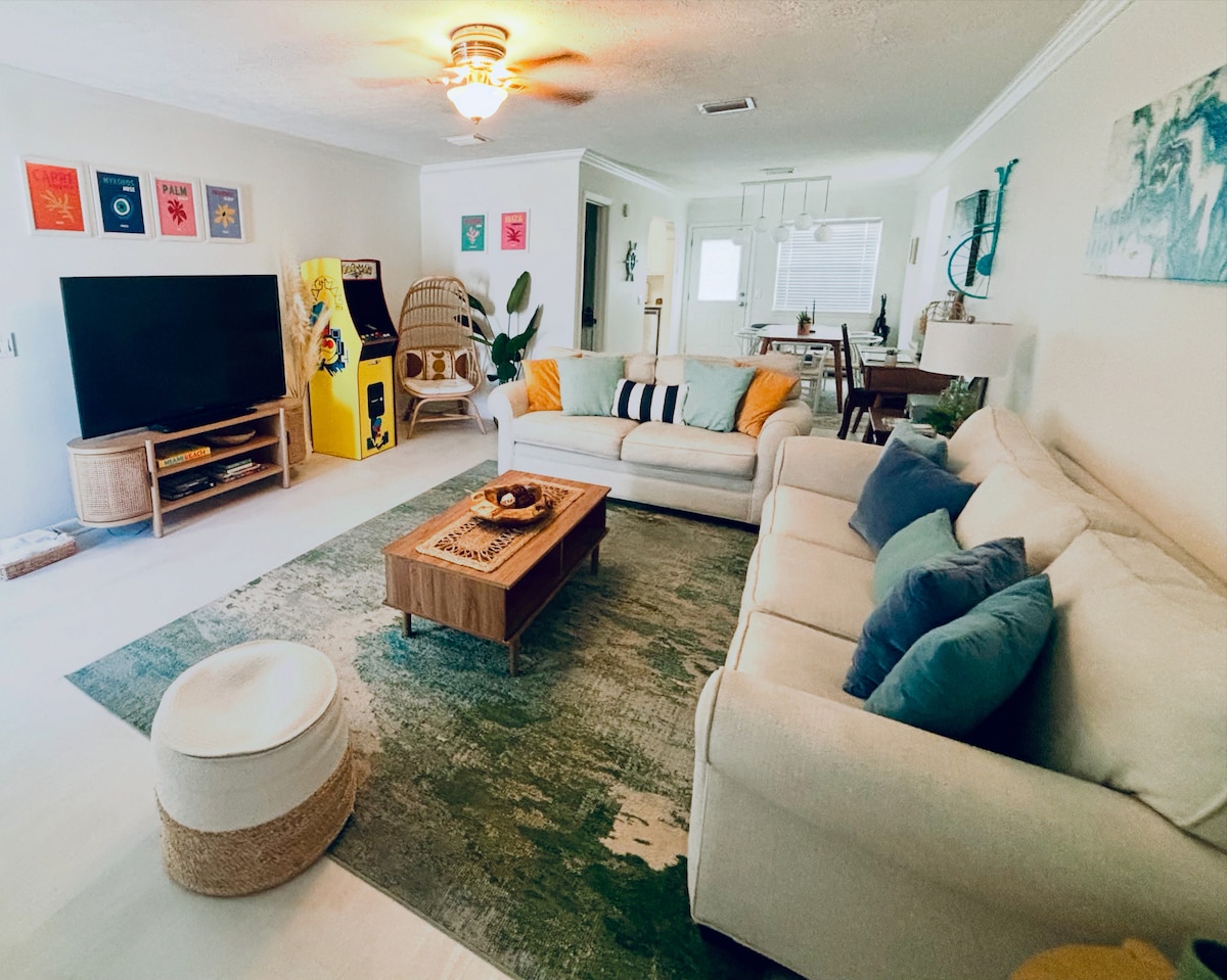 La Brisa: ✔Ιδιωτικό τζακούζι ✔4 λεπτά με τα πόδια από την παραλία και τα εστιατόρια ✔1 υπέρδιπλο, 2 διπλά, 1 πτυσσόμενο ✔Άνετο σαλόνι και γωνιά ανάγνωσης ✔Πλήρως εξοπλισμένη κουζίνα ✔1,5 μπάνια Ντουλάπα με παιχνίδια για✔ παιδιά Ντους ✔εξωτερικού χώρου Είδη ✔παραλίας, ψυγείο, καρότσι, πετσέτες και παιχνίδια ✔Αίθριο: αιώρα + τραπέζι φωτιάς + ψησταριά ✔Δωμάτιο πλυντηρίου ✔Ειδικό χώρο εργασίας ✔Wi-Fi και έξυπνες τηλεοράσεις ✔Θέρμανση και κλιματισμός ✔Δύο θέσεις στάθμευσης Runaway Island, Hidden Lagoon & Arcade σε μικρή απόσταση με τα πόδια Swampy Jack's Park 1,2 μίλια Margaritaville 1,4 μίλια Legacy Golf Club 1,6 μίλια Πάρκο Pier & Dog Beach 2,1 μίλια