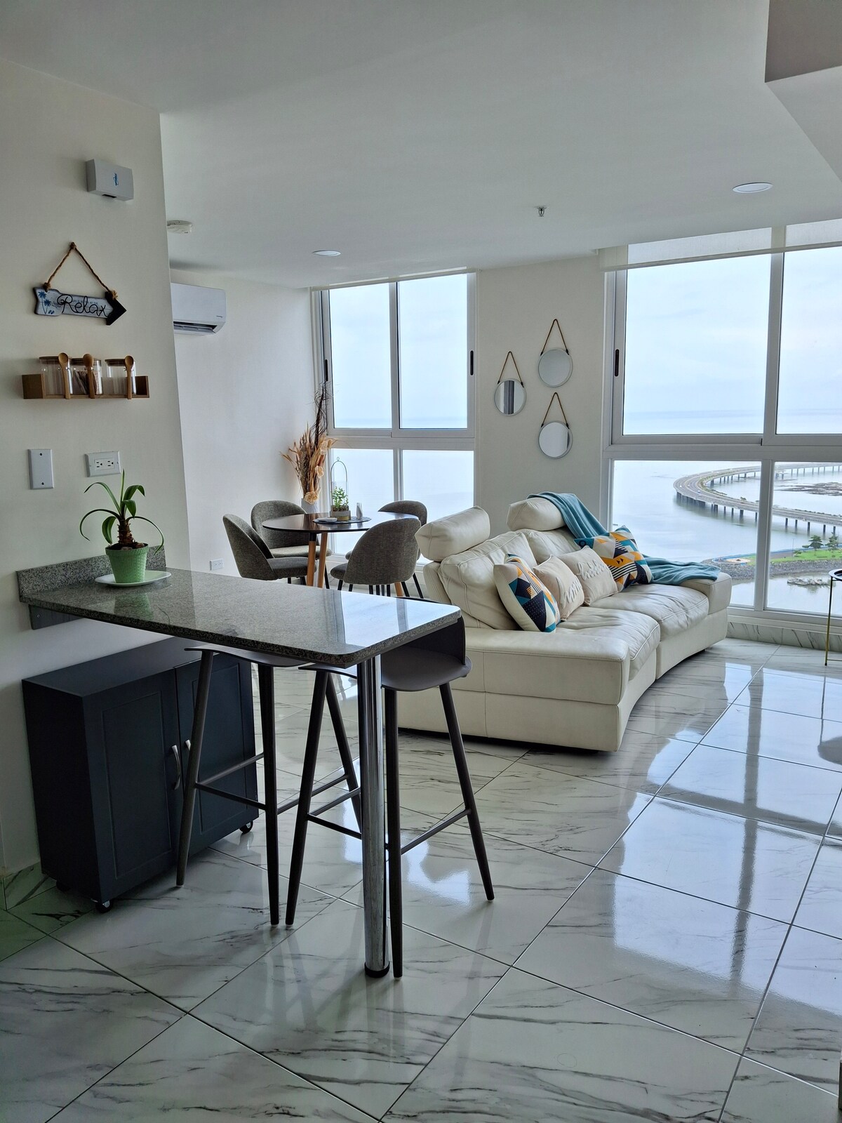 Ξυπνήστε με εκπληκτική θέα στον ωκεανό σε αυτό το μοντέρνο διαμέρισμα στην αποκλειστική λεωφόρο Balboa. Απολαύστε πισίνα υπερχείλισης, 360° sky lounge, γυμναστήριο, εστιατόρια, συνεργατικούς χώρους και μοναδικές επιλογές διασκέδασης. Λίγα βήματα μακριά από την ιστορική συνοικία, την παράκτια ζώνη και την αγορά θαλασσινών. Ιδανικό για ταξιδιώτες που αναζητούν άνεση, διακόσμηση και την πιο εκπληκτική θέα του Παναμά.