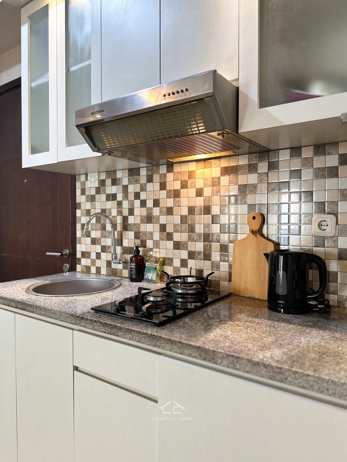 Modern Studio with Amenities & Mall Access in Depok Experience comfort and convenience in this cozy studio apartment, perfect for business or leisure. Equipped with essentials like a TV, high-speed WiFi, refrigerator, and water dispenser, it also boasts a scenic view for a relaxing stay. You can also enjoy the apartment's swimming pool. Note: albeit we DON'T provide water heater for shower, the water temperature here is generally comfortable 😊