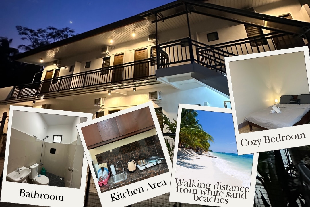 Καλά εξοπλισμένο διαμέρισμα στούντιο που βρίσκεται στο Libaong σε έναν υπέροχο τροπικό κήπο με κλιματιστικό, queensize κρεβάτι, κουζίνα, ψηφιακή καλωδιακή τηλεόραση, δωρεάν wifi και δική του βεράντα, περίπου 1.000 μέτρα από τη λευκή παραλία. 5 λεπτά από την Alona . Οι επισκέπτες έχουν πρόσβαση στην καλά συντηρημένη κοινόχρηστη πισίνα μας Κρατήσεις 3 ή περισσότερων ημερών, η υπηρεσία δωματίου δεν περιλαμβάνεται, το ηλεκτρικό ρεύμα, το αέριο μαγειρέματος και το νερό κοστίζουν επιπλέον ( δικό σας μετρητή ) Για τον Δεκέμβριο και τον Ιανουάριο δεν δεχόμαστε κρατήσεις άνω των 27 διανυκτερεύσεων Ενοικιάζεται σκούτερ και ποδήλατο