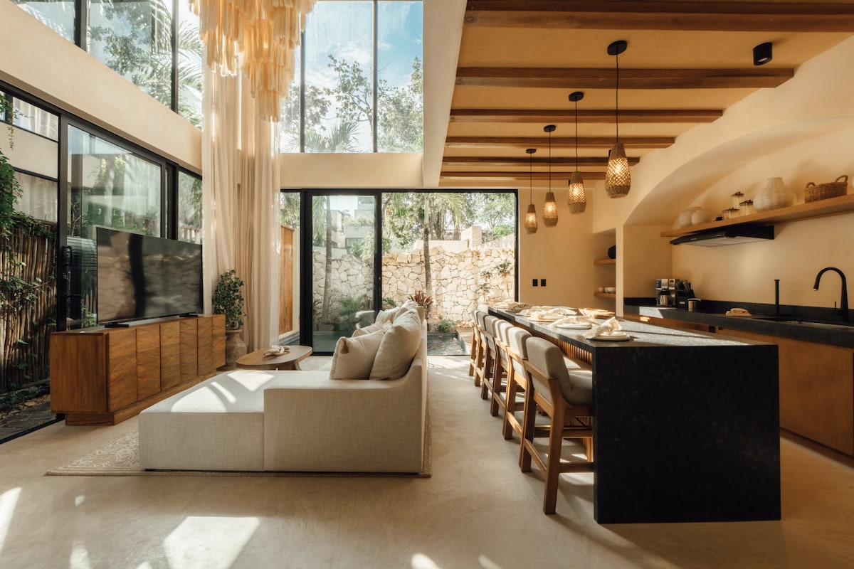 Ανακαλύψτε την υπερυψωμένη απόδρασή σας στη ζούγκλα σε αυτό το κομψό διαμέρισμα δύο υπνοδωματίων στο Siwa Tulum, σχεδιασμένο για ταξιδιώτες που θέλουν χώρο, ιδιωτικότητα και άνεση. Λίγα λεπτά από τις παραλίες και τη ζωντανή πόλη του Τουλούμ. Περιτριγυρισμένη από πλούσιο πράσινο, αυτή η προσεκτικά σχεδιασμένη κατοικία συνδυάζει τη σύγχρονη αρχιτεκτονική με τη φύση, προσφέροντας τη δική σας ιδιωτική βαθιά πισίνα, ταράτσα και χώρο μπάρμπεκιου ιδανικό για χαλαρές μέρες και αξέχαστες βραδιές κάτω από τα αστέρια. Είτε ταξιδεύετε ως ζευγάρι, οικογένεια ή παρέα
