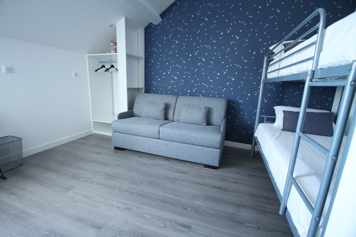 Το ευρύχωρο και φωτεινό δωμάτιό μας άνω των 30 τετραγωνικών μέτρων μπορεί να φιλοξενήσει 4 επισκέπτες. Ένα κρεβάτι 160x200 και ένας άνετος καναπές-κρεβάτι. Το υπνοδωμάτιο είναι εξοπλισμένο με μπάνιο και ιδιωτική τουαλέτα. Θα έχετε επίσης την επιλογή να χρησιμοποιήσετε τη μεγάλη θερμαινόμενη πισίνα, αν ο καιρός το επιτρέπει. Έχουμε επίσης γήπεδο για πέτανκ, κινηματογράφο, επιτραπέζια παιχνίδια και βιβλιοθήκη.