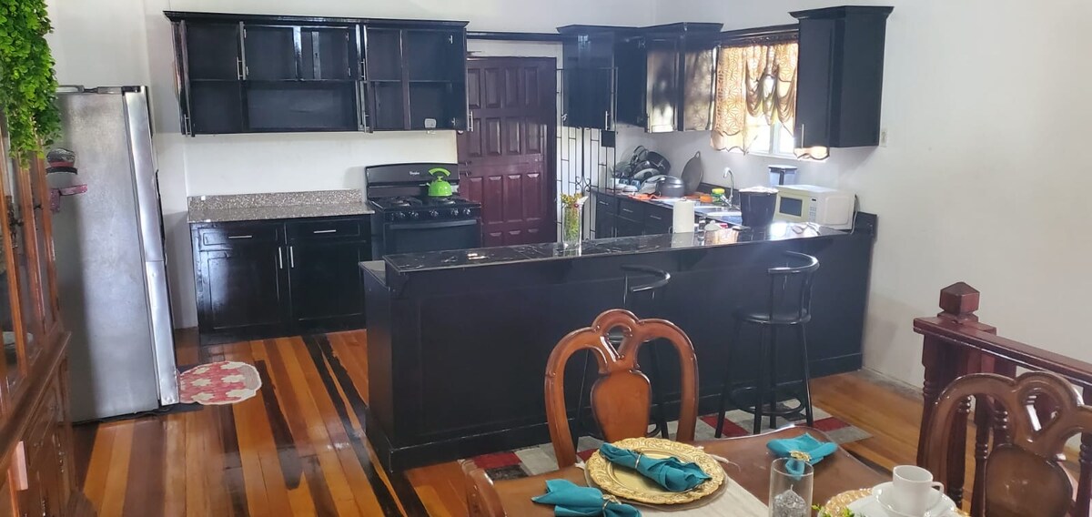 Located between Parika and Vreed-en-hoop. About 5 minutes drive to West Central Mall on the west side . Apartment includes hot and cold water, newly built , vinyl plank flooring throughout, modern kitchen with granite counter tops . 2 bedrooms - one king bed and one queen bed .