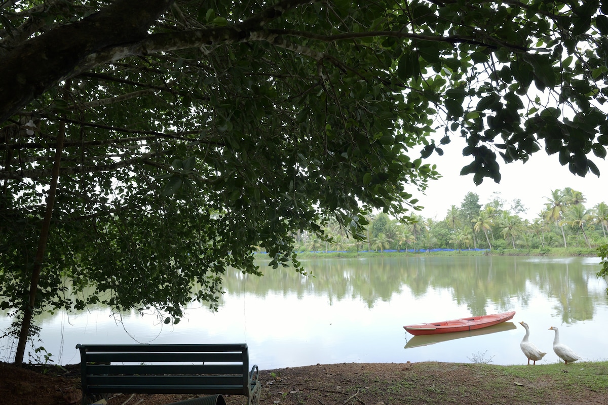 Καλώς ήρθατε στο παραδοσιακό μας σπίτι "Naalukettu" στην Κεράλα, 20 λεπτά από τα οπισθοχώρια του Kumarakom. Με περίτεχνα ξύλινα έπιπλα και μια ανοιχτή αυλή, είναι ένα γαλήνιο καταφύγιο. Μόλις 10 λεπτά από τα άνθη λωτού του Malarikkal και κοντά στον ιστορικό ναό Thiruvarppu Srikrishna Swamy (ανοίγει 2 π.μ.), προσφέρει ένα σπάνιο μείγμα χαλάρωσης, πολιτισμού και πνευματικότητας. Ιδανικό για οικογένειες, ζευγάρια ή όποιον αναζητά κληρονομιά, γαλήνη, αυθεντική γοητεία της Κεράλα και διαρκείς αναμνήσεις.