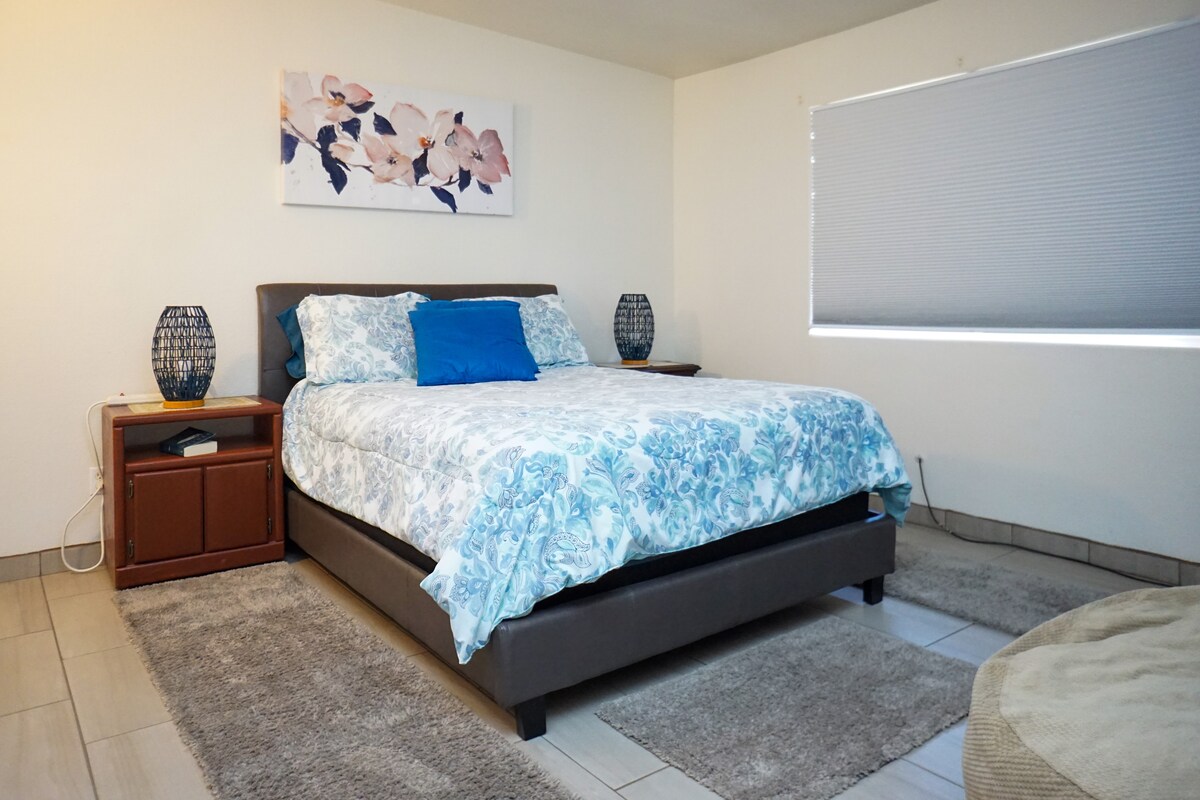 Συνδεδεμένη ολοκαίνουργια ανακαινισμένη πολυτελής σουίτα επισκεπτών στη Σιέρα Βίστα του Αριζόνα. Ιδιωτική είσοδος και ιδιωτικά καταλύματα με πλήρως εξοπλισμένη κουζίνα που είναι εφοδιασμένη με όλα τα απαραίτητα πιάτα/μαγειρικά σκεύη. Έχετε τον έλεγχο του κλιματισμού και της θέρμανσης στη σουίτα στούντιο. Αυτό περιλαμβάνει το δικό σας ιδιωτικό μπάνιο, υπέρδιπλο κρεβάτι, σαλόνι/τραπεζαρία και το δικό σας πλυντήριο ρούχων. Βρίσκεται σε μια ήσυχη γειτονιά στο κέντρο της Σιέρα Βίστα, σε μικρή απόσταση από διάφορα μονοπάτια, πεζοπορίες, παρατήρηση πτηνών και το Φορτ Ουατσούκα.