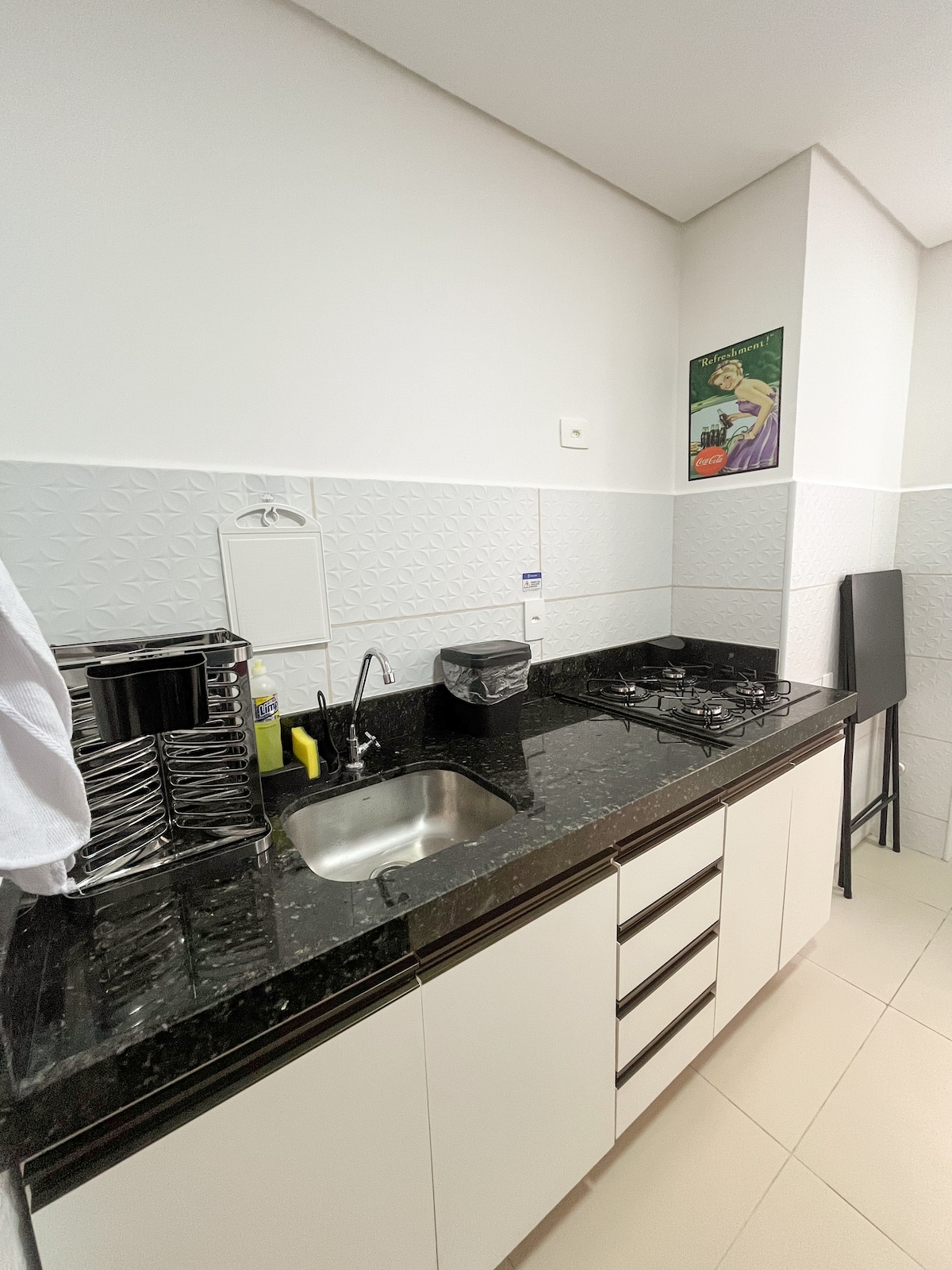 Apartamento completo e exclusivo Sala americana com cozinha completa " com vários itens de alimentação Ex: água mineral, café, chás, açúcar, sal, arros, óleo de soja, temperos etc" 1 Quarto grande com switch lugar para redes e colchonetes, lugar arejado, silencioso e tranquilo ao lado de uma praça ótima para caminhar