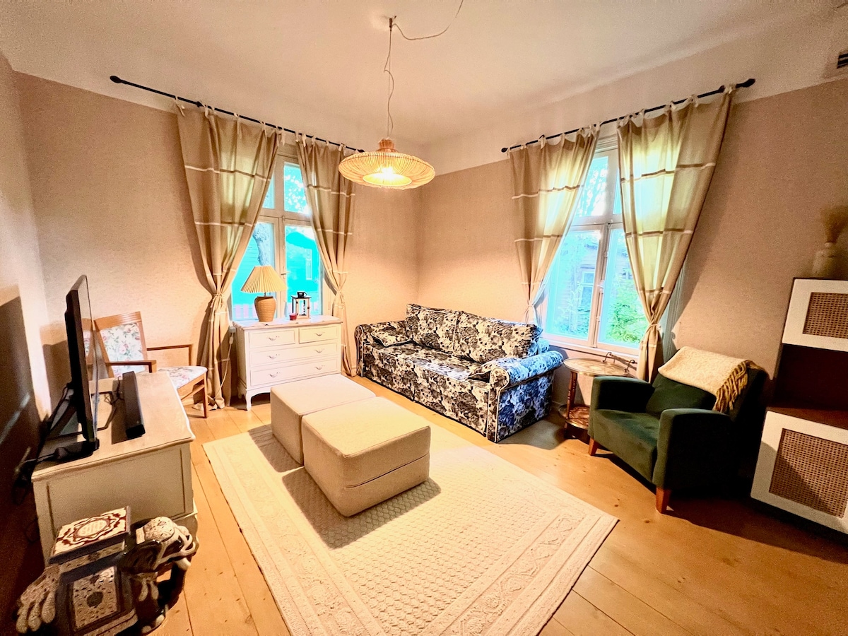Αυτό το διαμέρισμα είναι ξεχωριστό λόγω της εξαιρετικής τοποθεσίας, της ιστορικής γοητείας και των σύγχρονων παροχών. Βρίσκεται σε ένα κτίριο που κατασκευάστηκε το 1936 και έχει διατηρήσει το παλιό του εξωτερικό, το διώροφο διαμέρισμα 90 τ.μ. έχει εκσυγχρονιστεί. Βρίσκεται δίπλα στο ποτάμι, μόλις 10 λεπτά με τα πόδια από το κέντρο της πόλης. Το διαμέρισμα διαθέτει σάουνα και τζάκι, καθιστώντας το ιδανική επιλογή για μια άνετη διαμονή.